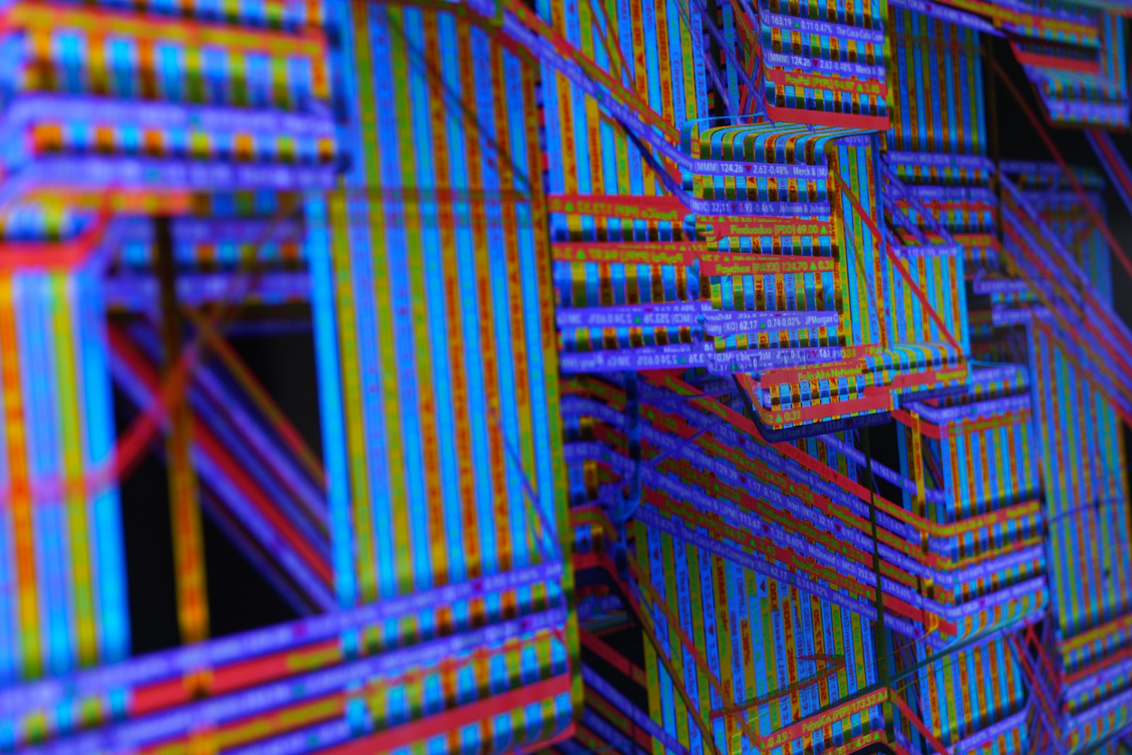 Textil digital generativo creado con data en tiempo real de los principales fondos índice bursátiles.