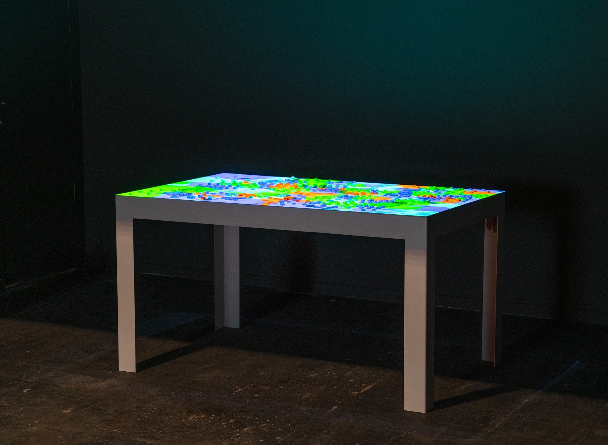 Medio: Teclados desechados, proyector, reproductor de vídeo, mesa metálica.