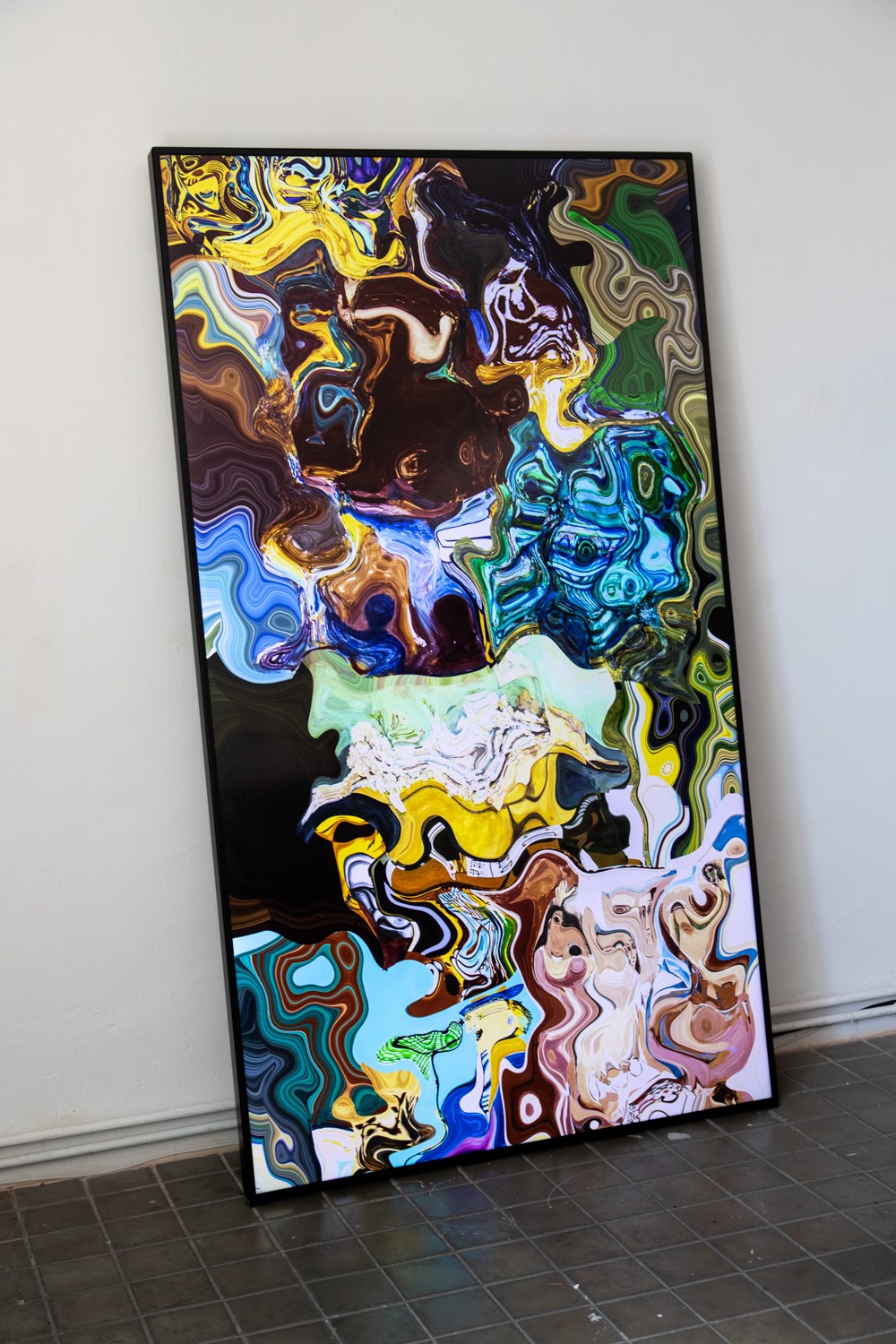 Amalgama es una obra de video generativa creada por obras de arte icónicas desde el Renacimiento hasta el arte contemporáneo. Los artistas seleccionados y presentados en la obra son el resultado de la búsqueda “top visual artists of all times” (artistas visuales top de todos los tiempos) en Google. Diez imágenes diferentes de aproximadamente 500 artistas fueron descargadas de Internet, y transformadas a través de un algoritmo creado por el estudio del artista. El algoritmo licúa estas imágenes en una mezcla que abstrae parcialmente las obras originales. Estas imágenes se deslizan verticalmente por la pantalla en orden cronológico organizadas por el año de nacimiento del artista.