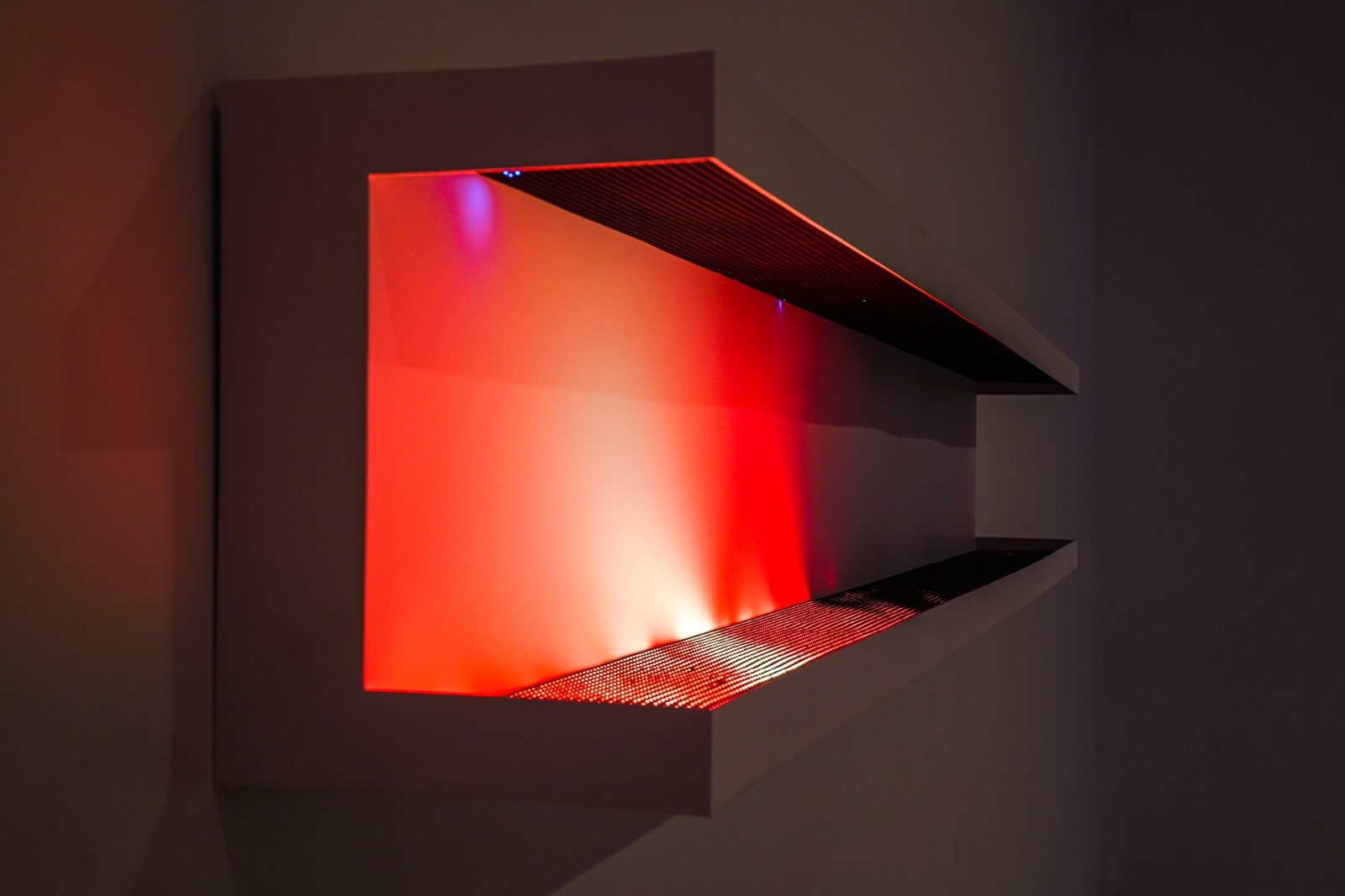 Escultóricamente, la obra evoca una escultura minimalista. Al mismo tiempo, funciona como un dispositivo óptico que alberga un juego de luces y sombras, con reflejos generados por pantallas LED incrustadas en su interior. Al traducir datos abstractos en una experiencia visual, Diorama II transforma la información estadística en un paisaje digital en constante evolución.