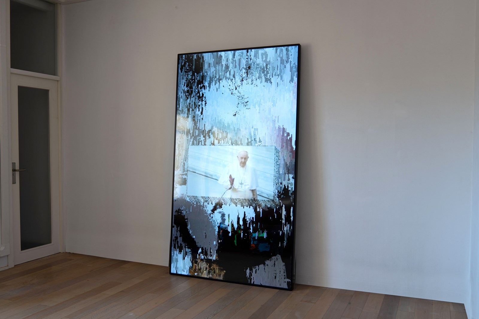 Maelstrom es una obra de expresionismo abstracto que, en vez de usar pinceles, emplea un algoritmo desarrollado ex profeso que salpica formas pictóricas por la pantalla. En lugar de pintura, las composiciones abstractas son creadas con fotos de prensa del día. Estas imágenes se deslizan por la pantalla antes de disolverse en una abstracción goteante. Las caras de líderes políticos se derriten ante nuestra mirada; las banderas nacionales de conferencias de prensa aportan matices saturados a la composición; las multitudes manifestantes también sucumben al efecto erosivo del algoritmo. La obra generativa conjura diversas referencias de la historia del arte: Turner, Clyfford Still, Francis Beacon o Baselitz, como muchos otros miembros de la familia del arte abstracto.