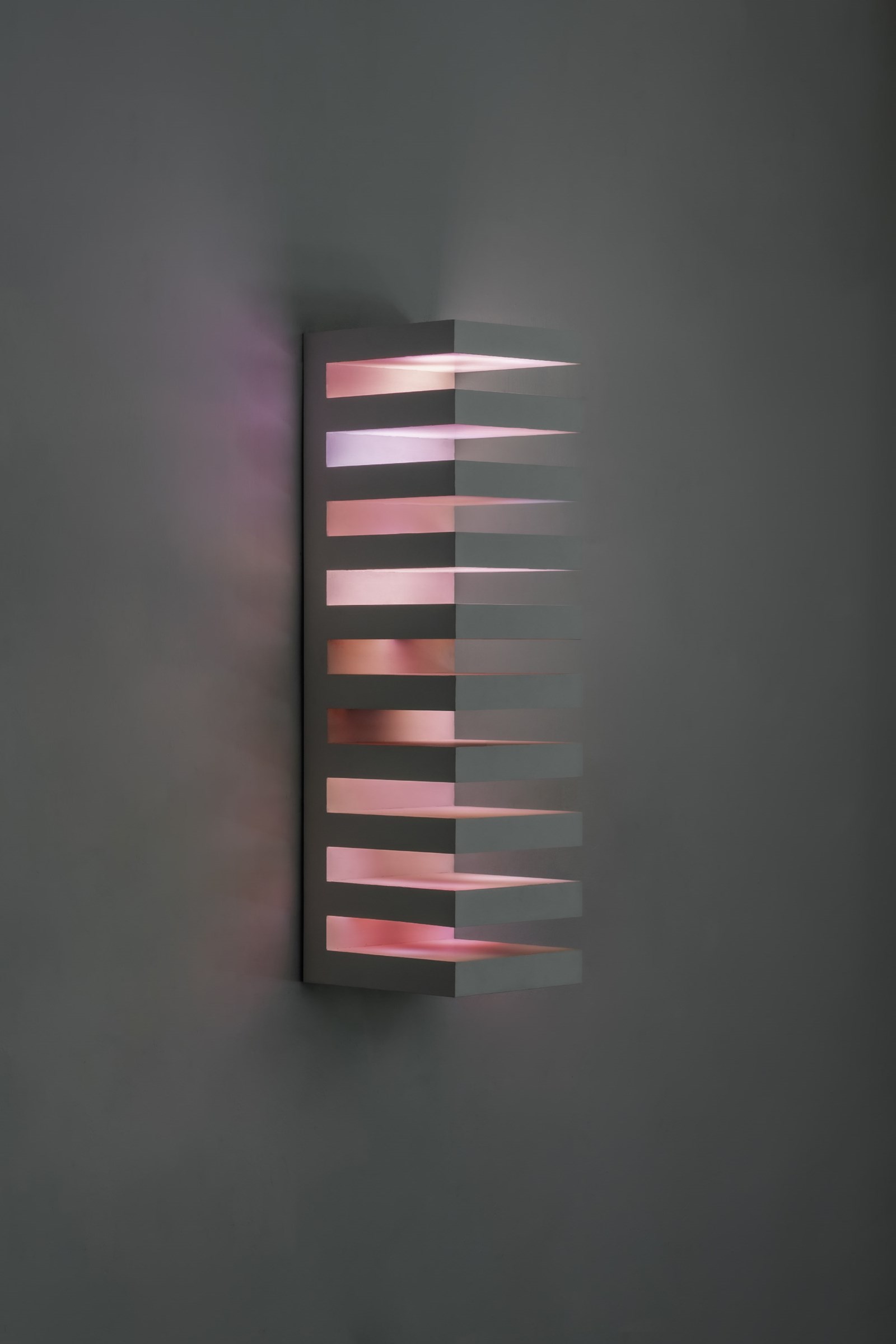 En su forma, la obra adopta la limpieza y simplicidad del minimalismo, con líneas precisas y geometrías afiladas que evocan las creaciones de Donald Judd. Sin embargo, la sobriedad visual de la escultura se ve alterada por la introducción de animaciones generativas abstractas derivadas de videos pornográficos en streaming, inyectando a la obra una carnalidad cruda.