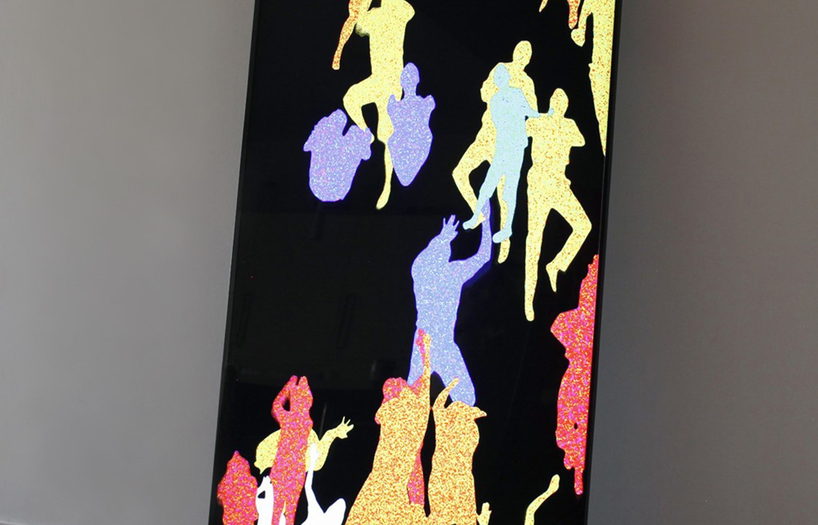 Daniel Canogar's Rise is an artwork that symbolically releases our fantasies of overcoming imposed obstacles in our lives. The generative animation was recorded in a staged interaction which took place in New York’s Times Square during four days in July 2014. Over 1200 participants of multiple nationalities, ages and professional backgrounds crawled over a green-screen surface, contributing their performance to the final artwork.
