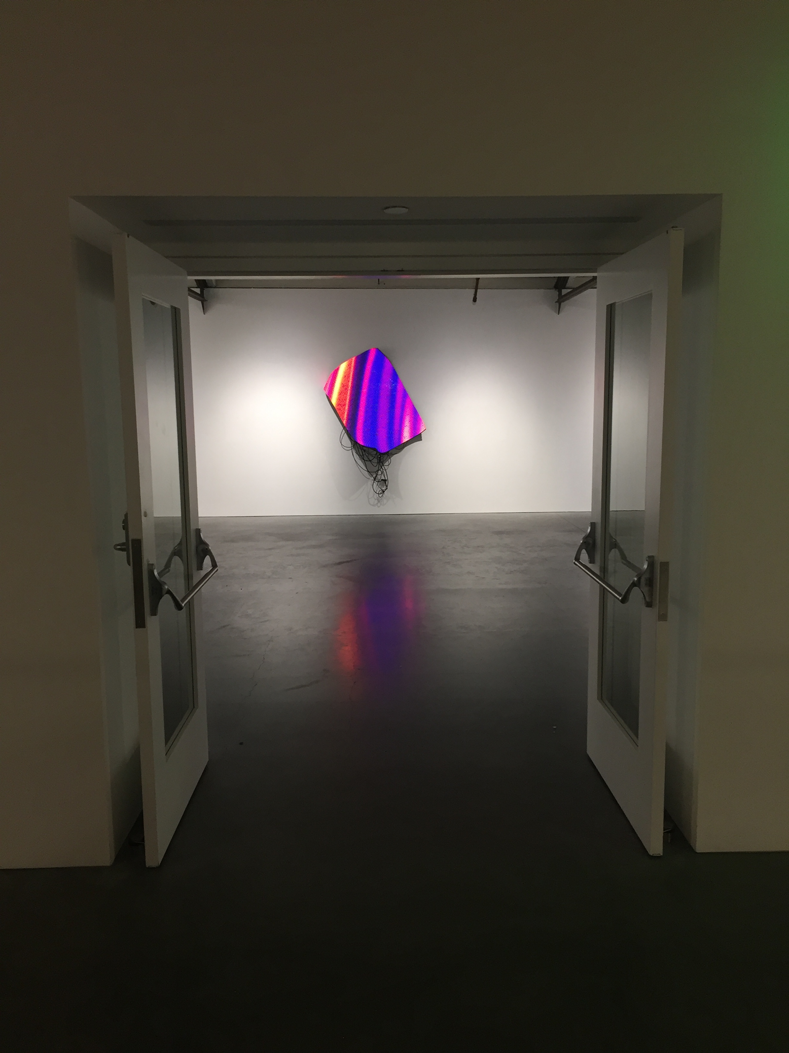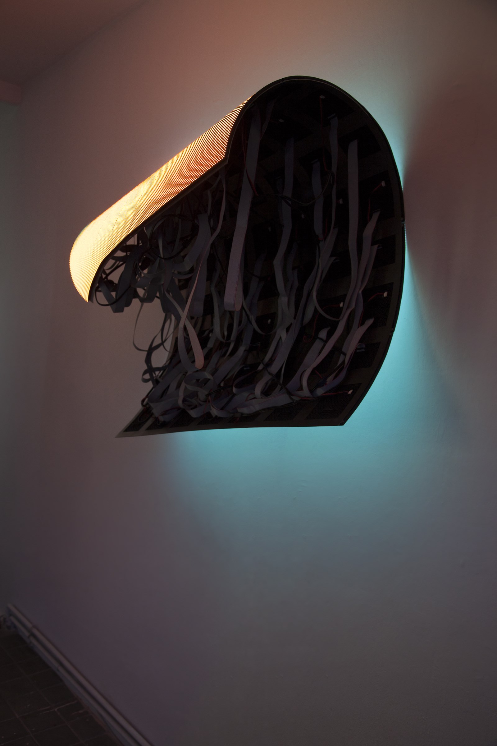 Nuestra forma de relacionarnos con las pantallas ha cambiado sustancialmente en los últimos años. Desde dispositivos para llevar en la muñeca que monitorizan nuestros biorritmos a enormes vallas publicitarias que envuelven edificios. Y es que las pantallas están adquiriendo una nueva materialidad, una calidad de membrana que se extiende sobre múltiples superficies, objetos y arquitecturas. La serie “Echo” reflexiona sobre esta nueva concepción de la pantalla-piel y propone dispositivos lumínicos y sinuosos que dejan al descubierto las tripas del aparato, los cables y componentes electrónicos que normalmente se ocultan. Estas pantallas abandonan la pasividad impuesta por nuestras ansias de representar el mundo, para percibir y dialogar con su alrededor de forma activa, llegando más allá de lo que nuestros sentidos abarcan. Dan forma un nuevo cuerpo que representa y siente su ecosistema a través de internet.