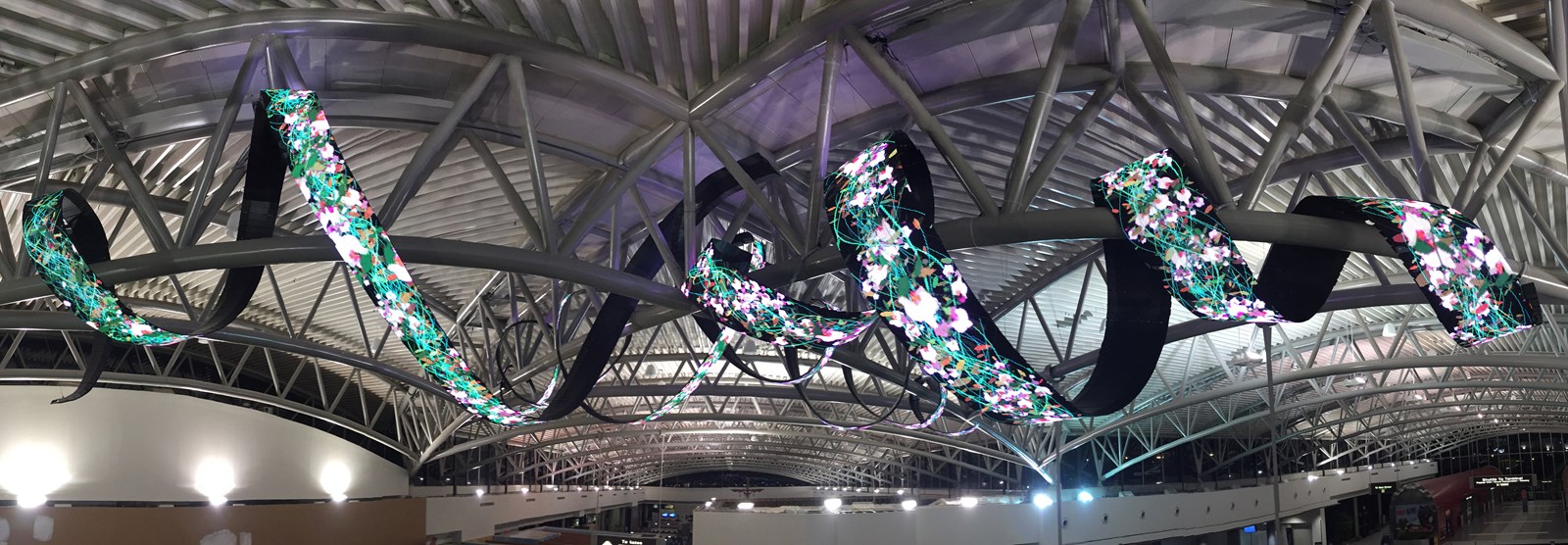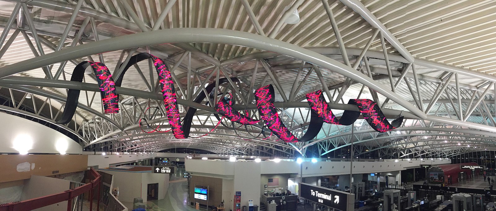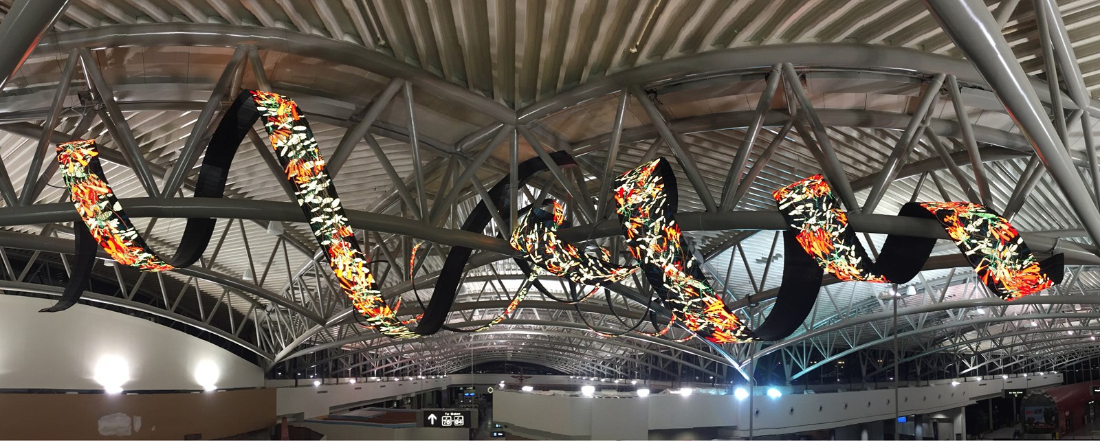 Tendril es una instalación permanente creada para el Aeropuerto Internacional de Tampa. La obra surge de la fascinación del artista por las representaciones de ruinas que provoca la naturaleza cuando reabsorbe lo que fue construido por humanos. La obra de arte está compuesta por pantallas LED en forma de cinta que se enrollan alrededor de las armaduras del espacio central de Airside F en el aeropuerto. La forma escultórica recuerda a las formas de las vides que se enroscan alrededor de un enrejado. Los videos representados en la obra de arte muestran una rica variedad de viñas nativas del sur de Florida. Las animaciones de video de Tendril sugieren la recuperación del territorio, pasando de gestos invasivos rápidos a secuencias tranquilas de especies que se instalan en su nuevo hogar. Las plantas nativas son invitadas al interior del aeropuerto, conectando así el espacio interior con el exterior. La animación abstracta que se extiende sobre la obra de arte es generativa, convirtiéndose así en un trabajo de infinitas combinaciones.