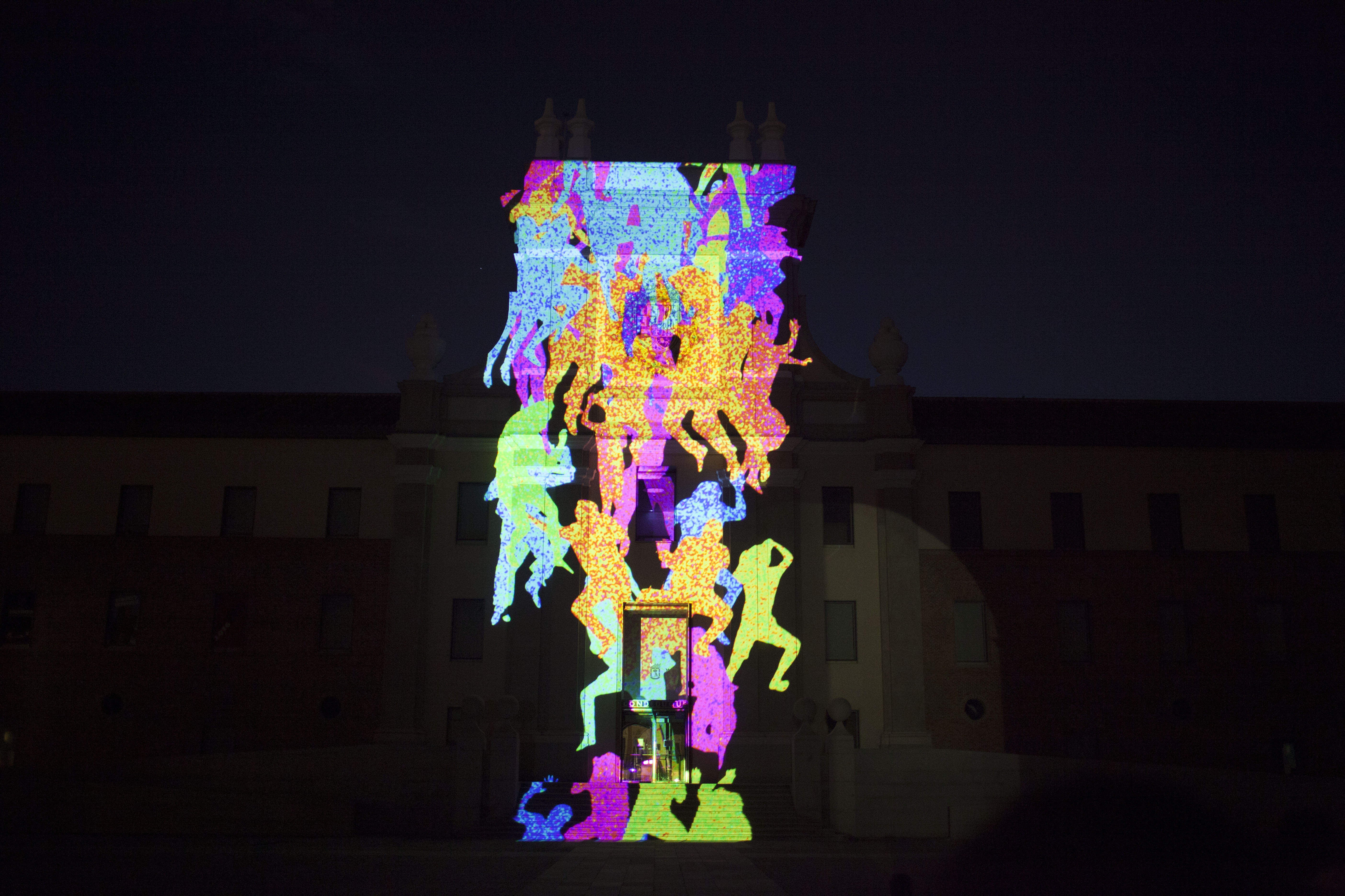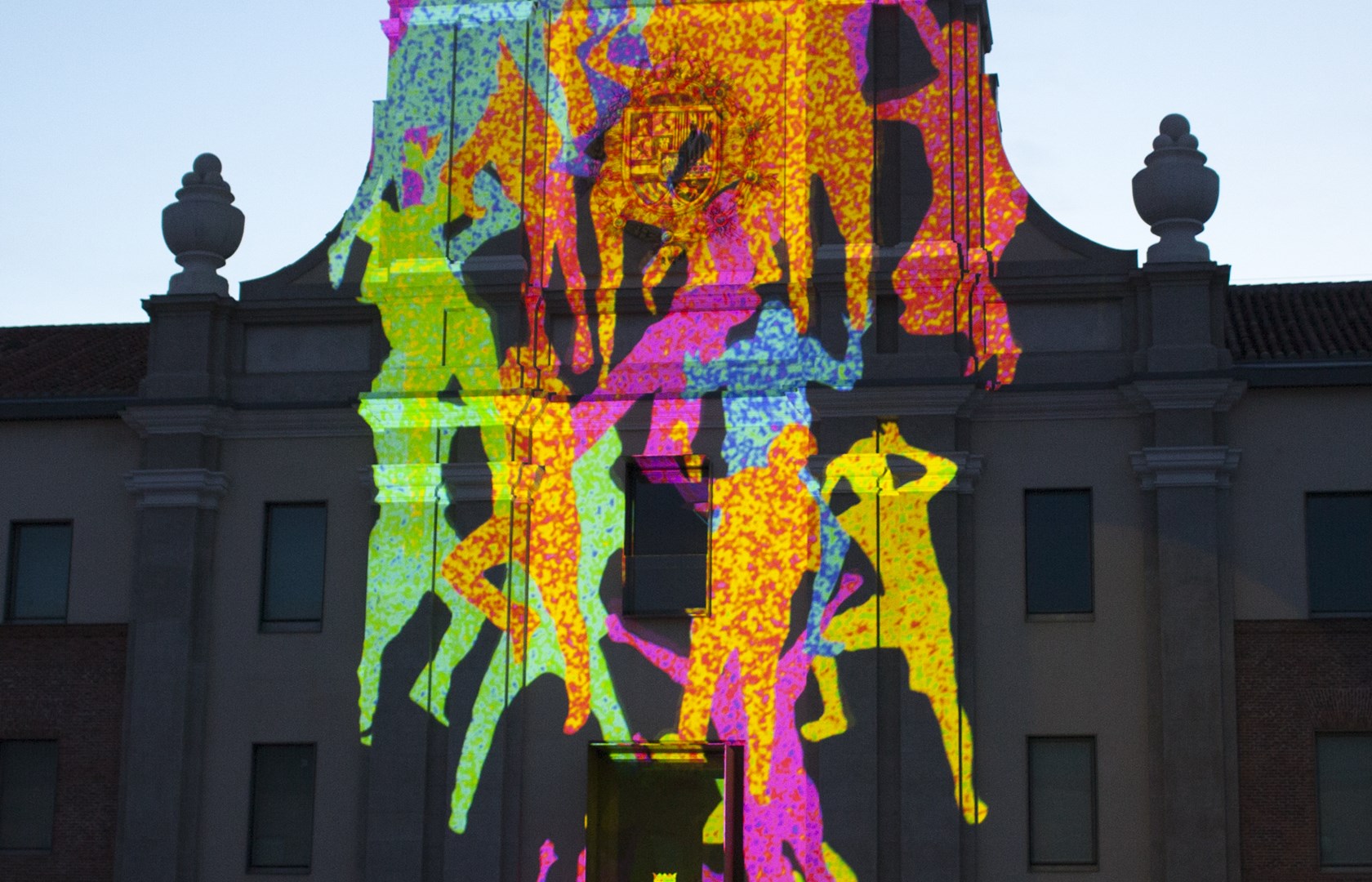 Asalto Conde Duque plays with the audience's collective imagination inviting them to virtually assault the monument. The relentless procession of bodies climbing the building metaphorically evokes historical revolutionary actions such as the Storming of the Bastille or the Winter Palace, or more recently, African migrants climbing the border's fence in Melilla to enter Europe.