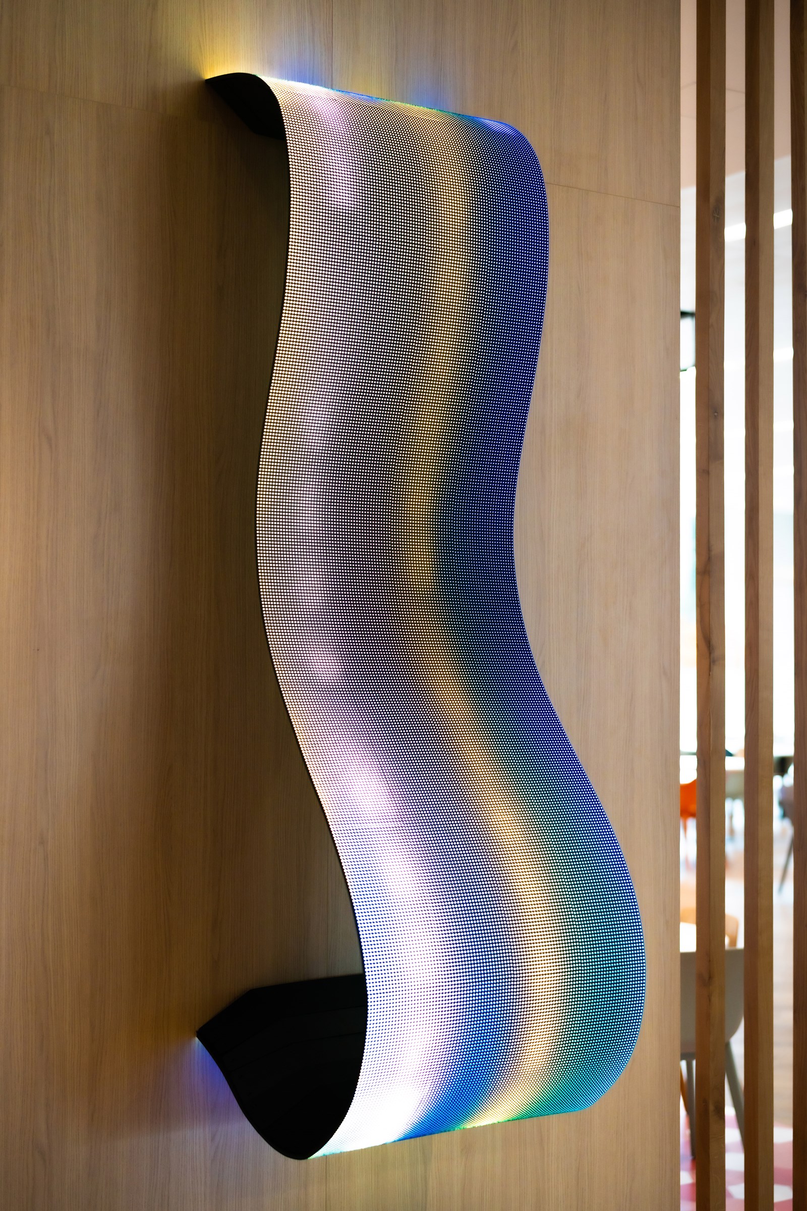 Flexible LED screen, computer, generative custom software, real-time data, metal structure