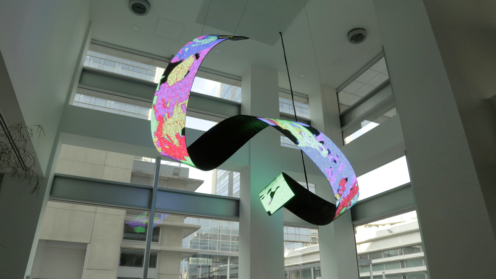 Medium: Permanent sculptural LED video installation. LED Screen, computer