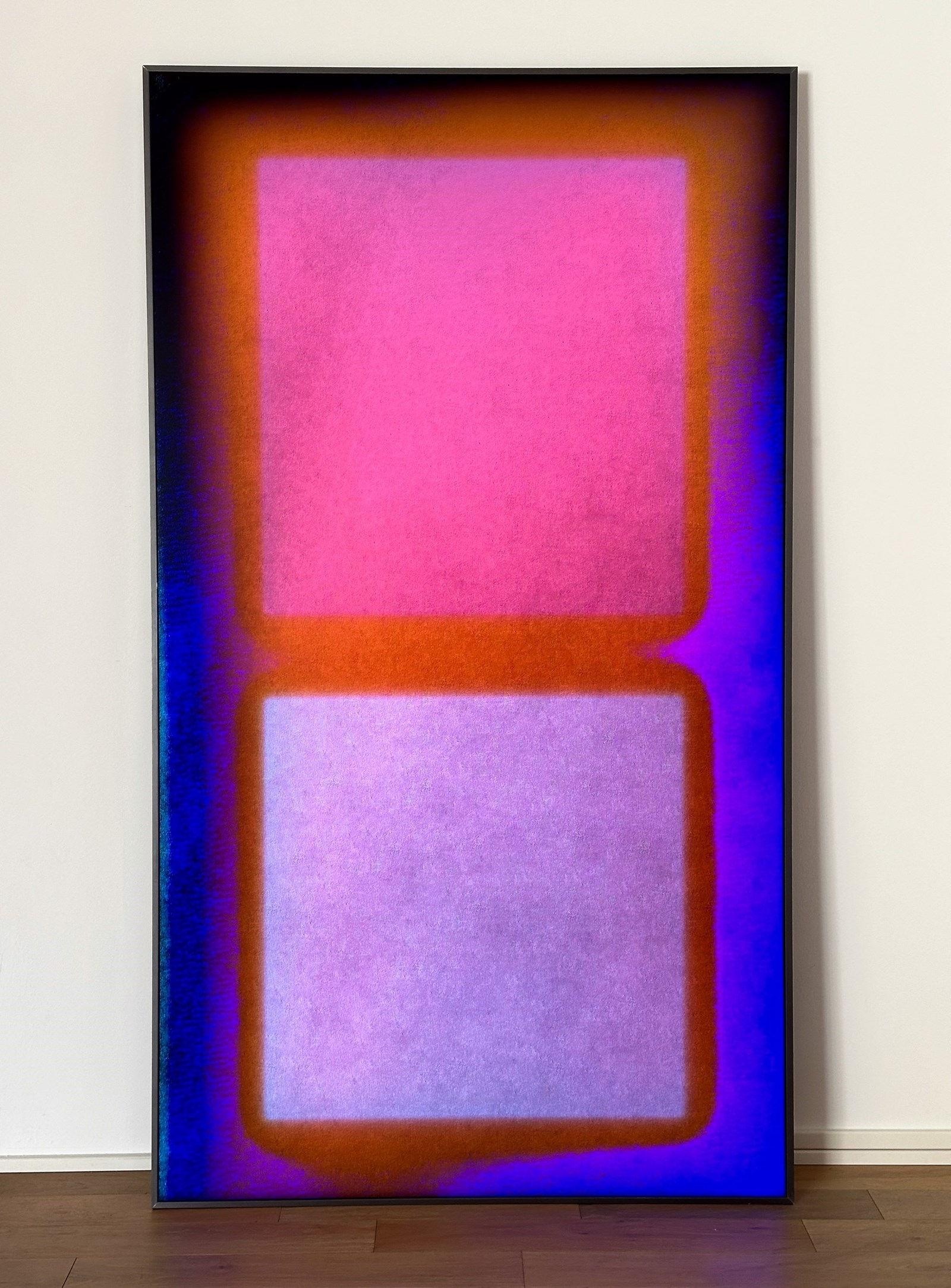 The artwork is a generative project that creates abstract compositions reminiscent of the paintings of one of the most significant members of the New York School: Mark Rothko. Soft-edged rectangles floating over a diffuse background shift from one composition to another with barely imperceptible transitions. Behind these compositions, a custom made-algorithm is randomly selecting an image from the World Press Photo catalogue and reinterpreting it as a Rothko-like painting. The over 2,500 images in the archives of World Press Photo, a prestigious yearly award in the field of photo-journalism, become the palette for this algorithmic project. The contours of selected photographs seep into the abstract composition as barely legible brushstrokes. The photos are analyzed for their chromatic values, and aid to build a color palette for the abstract compositions. Via a keyboard, viewers can momentarily reveal the photographic images that the abstractions are pulling from.