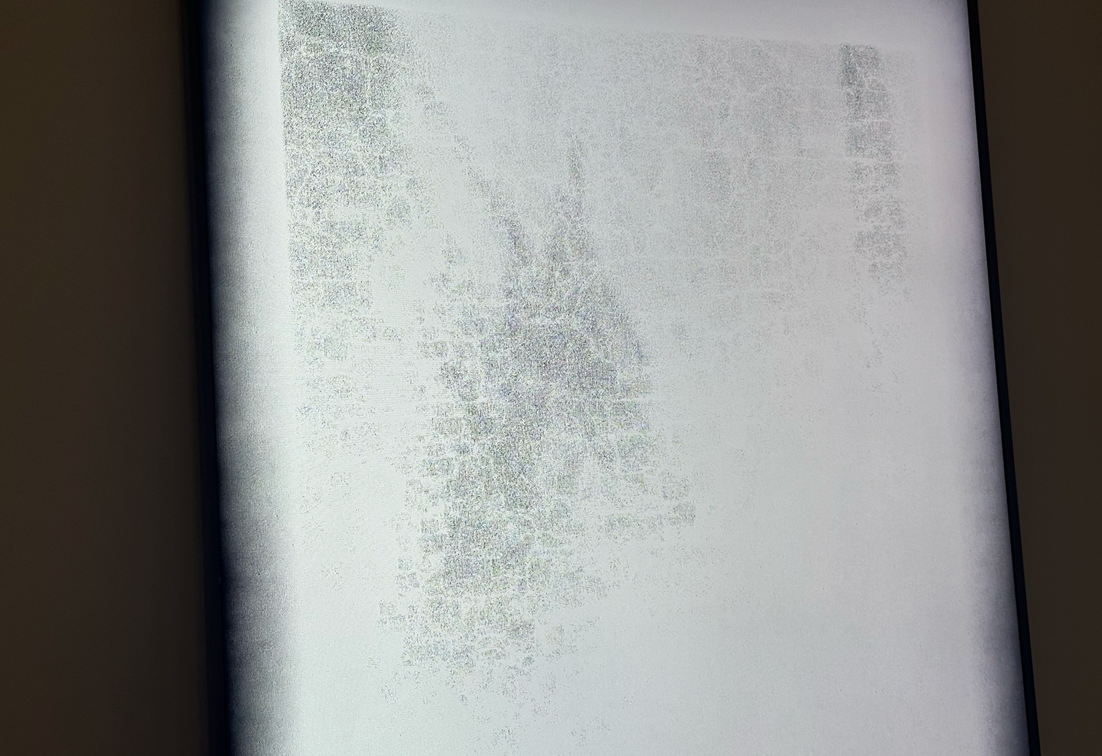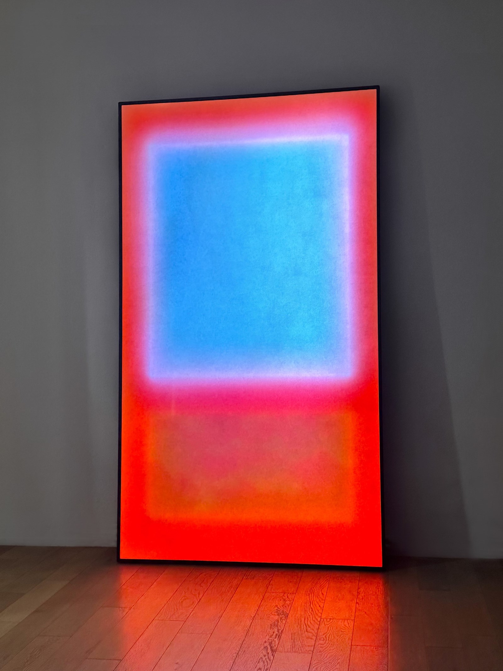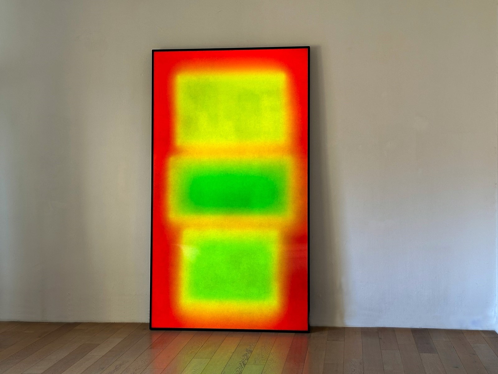 Effulgence references both canvas and screen, from the shimmering surfaces of a color-field painting to the glowing color-field environments of a James Turrel or Robert Irwin installation. The artwork explores the distinctive materialities of both paintings and photographs, and how they intersect on the luminous screen of digital media. Effulgence is also a work about perception, and how we struggle to frame the world we inhabit. Its soft-focus painterly compositions, and the gritty photos that generate them, reveal an underlying contradiction in all representation: sometimes images can help us get closer to the world, while other times they protect us from it.