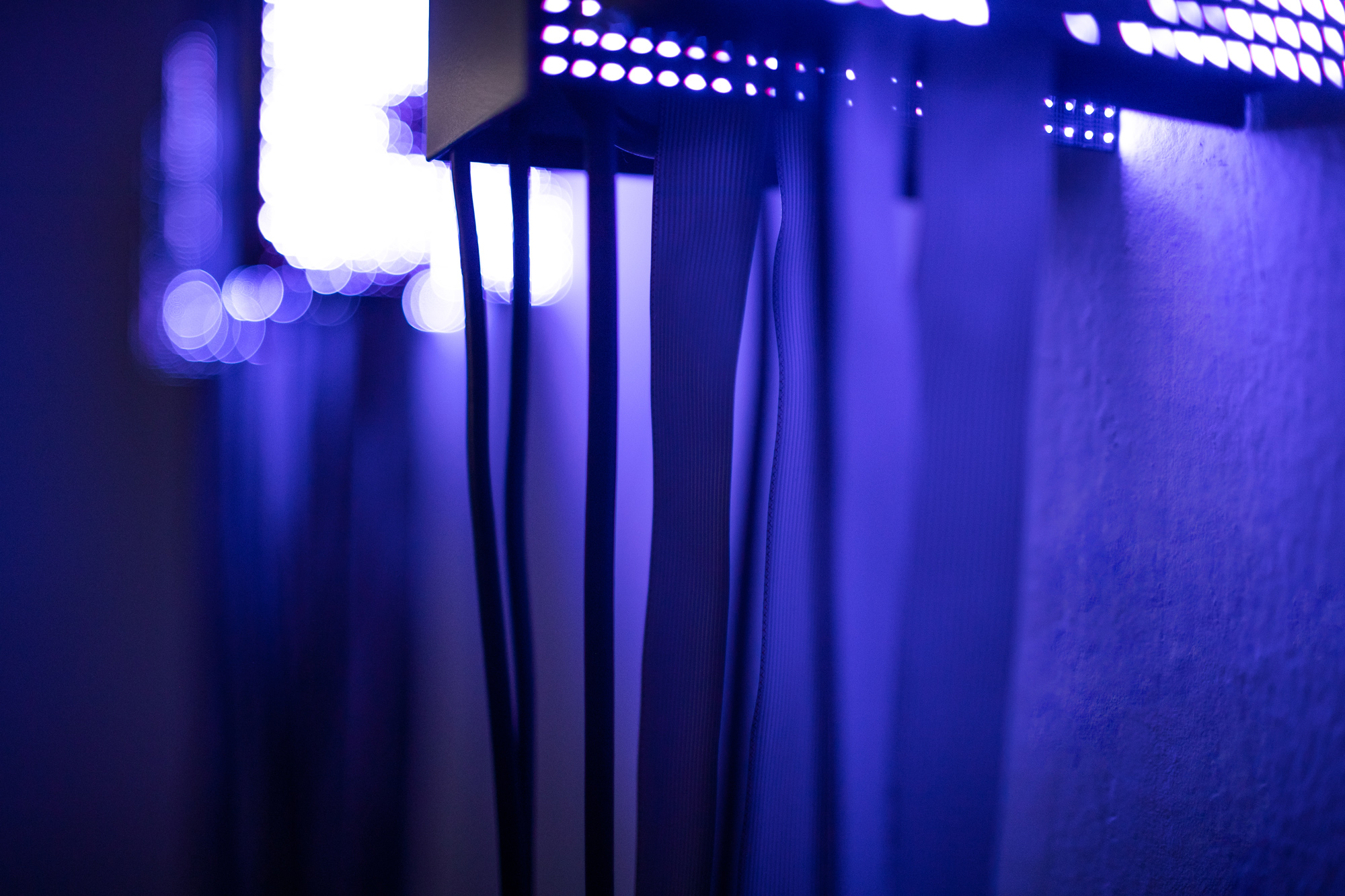Like the life of a cell, the content is totally autonomous in its form and evolution as it is in constant communication with its surroundings. In fact, the activity of these screens projects different lights, whose chromatic contamination converses freely, escaping beyond the physical limits of each module.