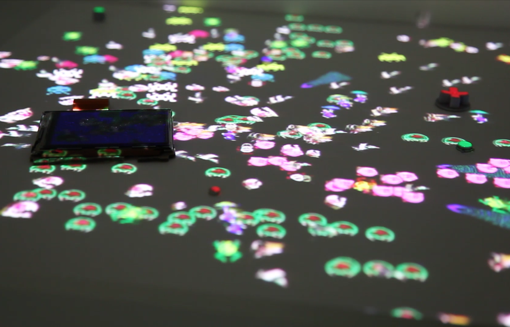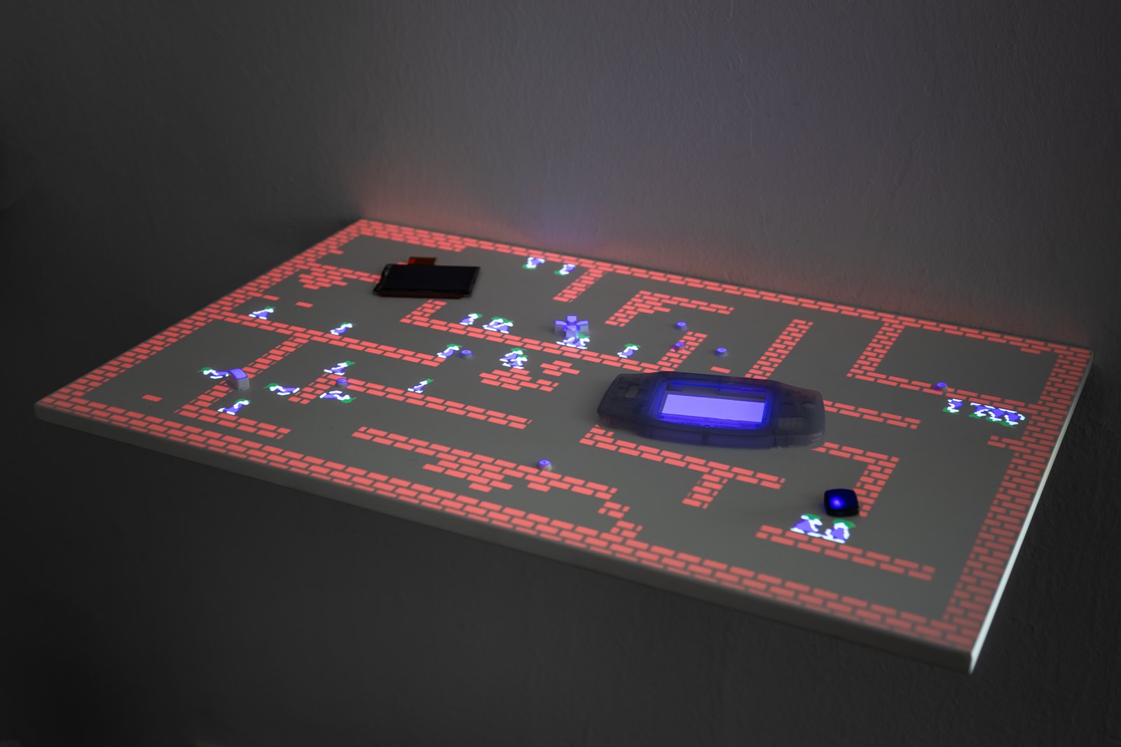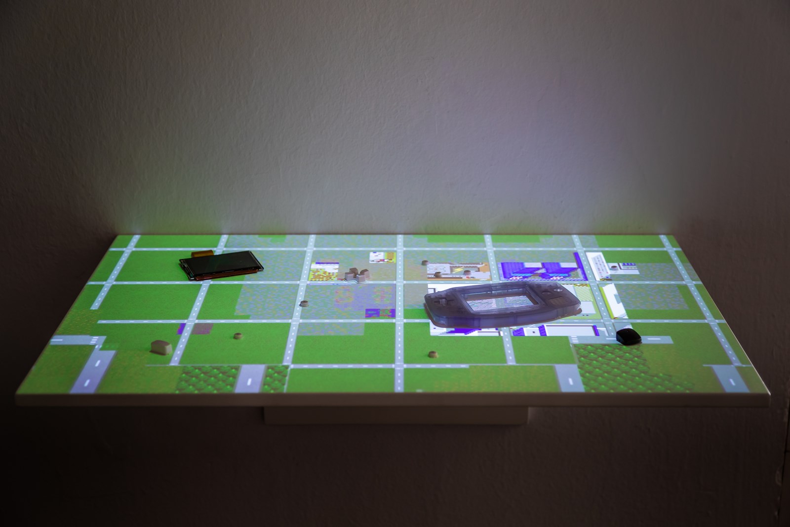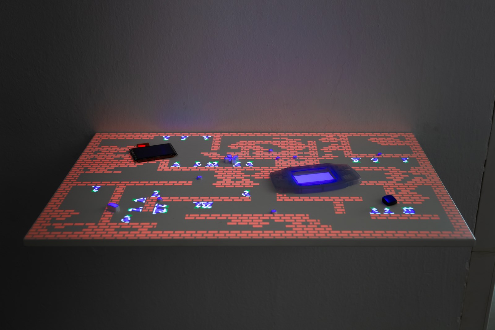 Medium: Discarded Game Boy parts, wood, projector, microSD memory card.