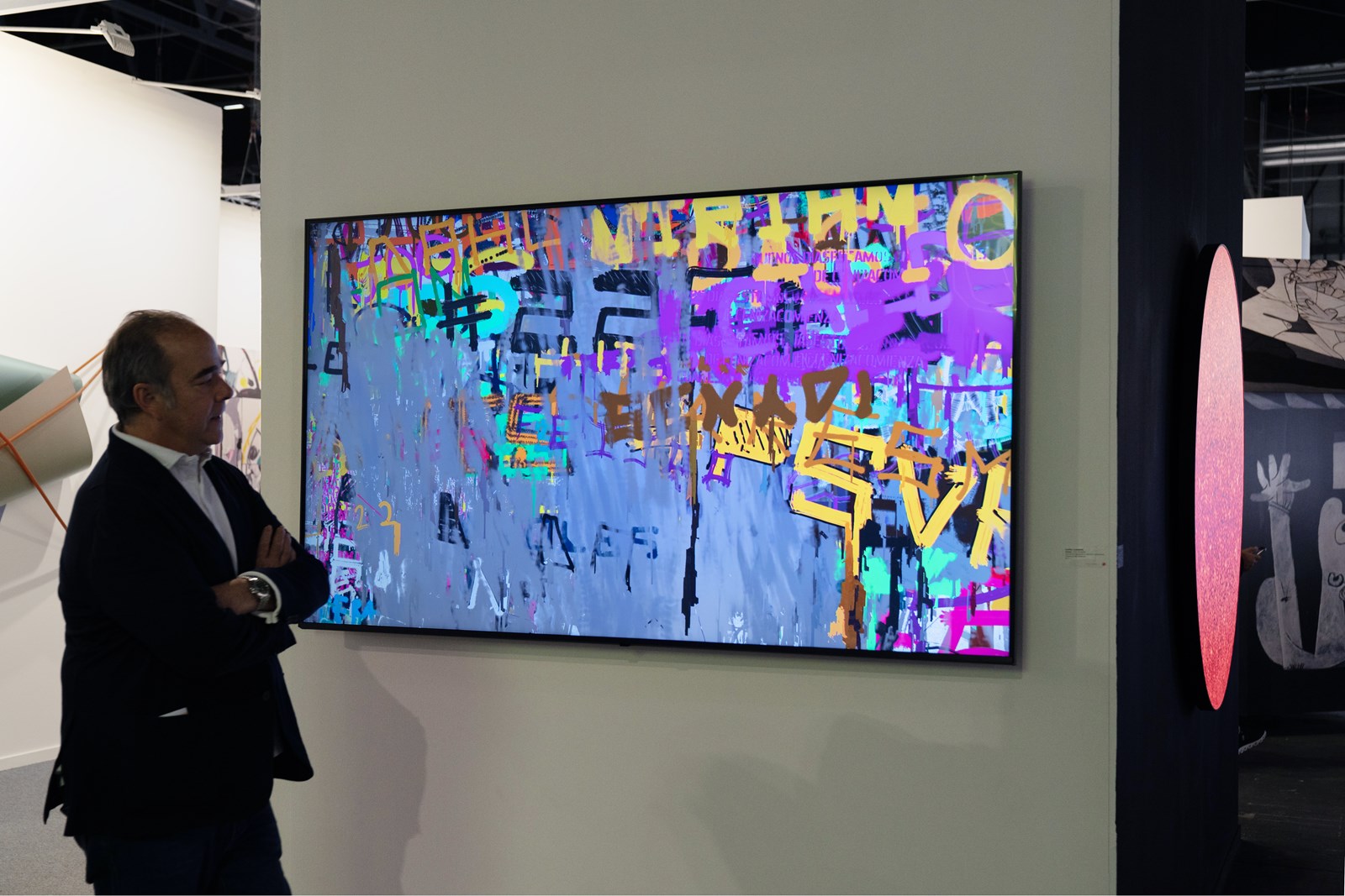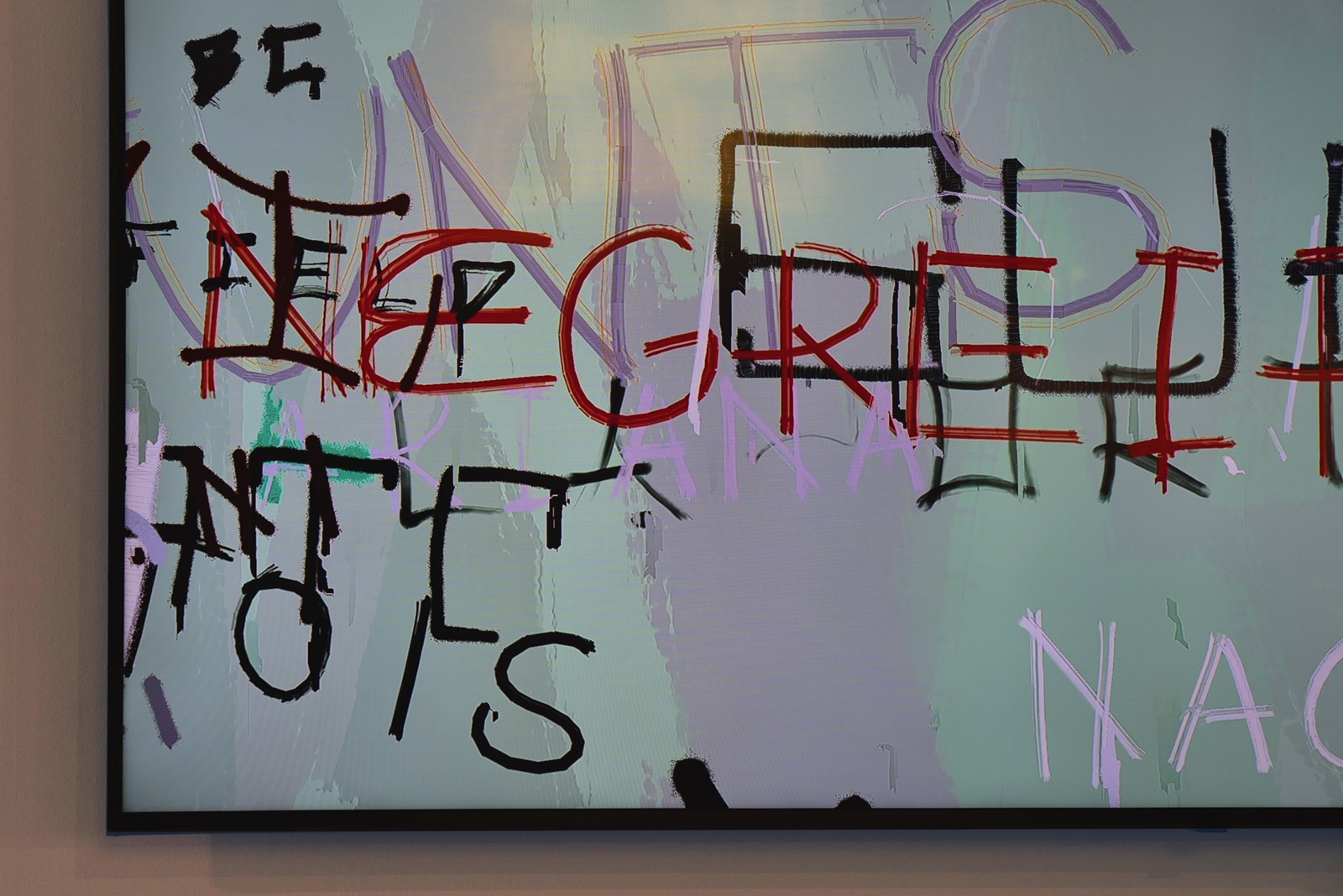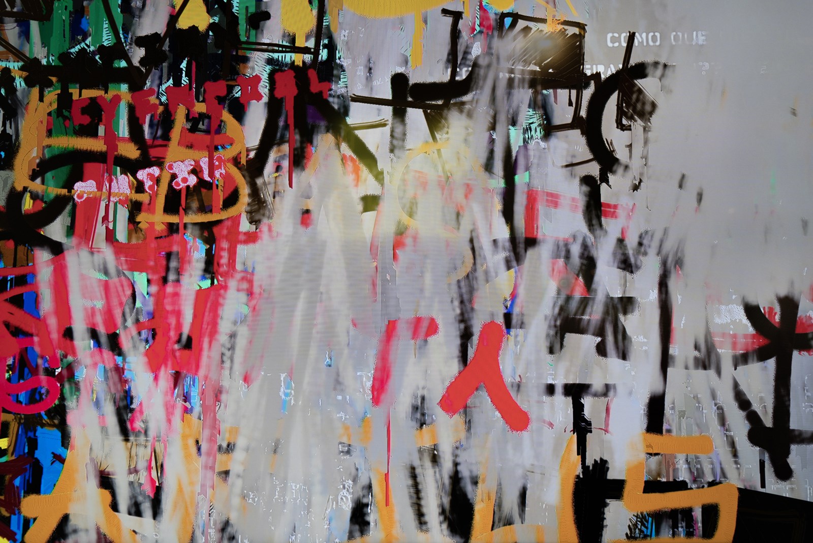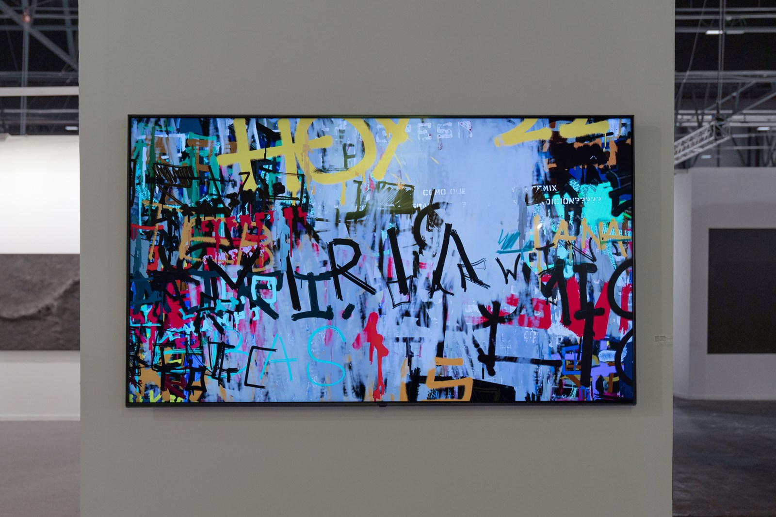 Scrawl’s pace replicates the layers applied to urban walls, where graffiti texts are constantly covered with swaths of flat paint, creating a new canvas for a new succession of graffiti. This effect evokes the struggle between the citizens’ yearning for individual communication and the institutional desire to erase and clean the chaotic world of graffiti. The outcome is an algorithmic piece constantly shifting between the aesthetic of social protest and abstract painting.
