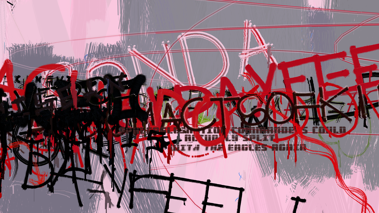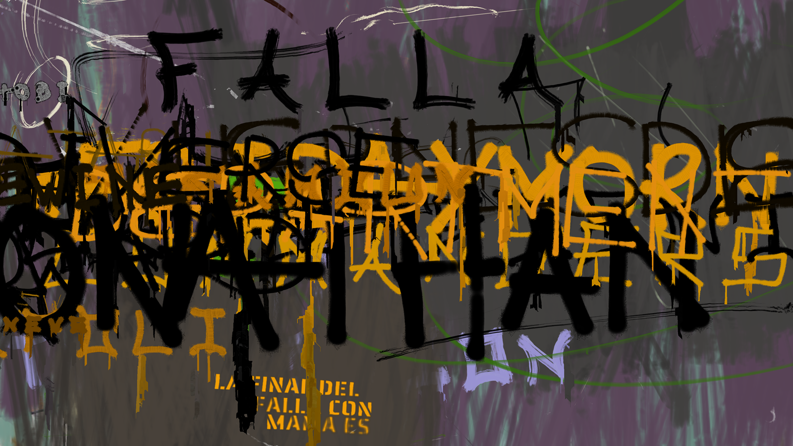 Scrawl is a generative piece that reacts in real time to trending topics on social media. The custom-made software gathers periodically the most talked about topics in the online community. These topics are translated in real time to the graphic aesthetic of graffiti and street protest signage which, contrary to professional graffiti or street art, are created quickly and anonymously. As a piece in a constant state of flux, Scrawl tries to capture the multiple tensions that coexist in digital social spaces, where the individual identity –always hidden behind the screen- expresses itself in its rawest, and perhaps most real and honest version.