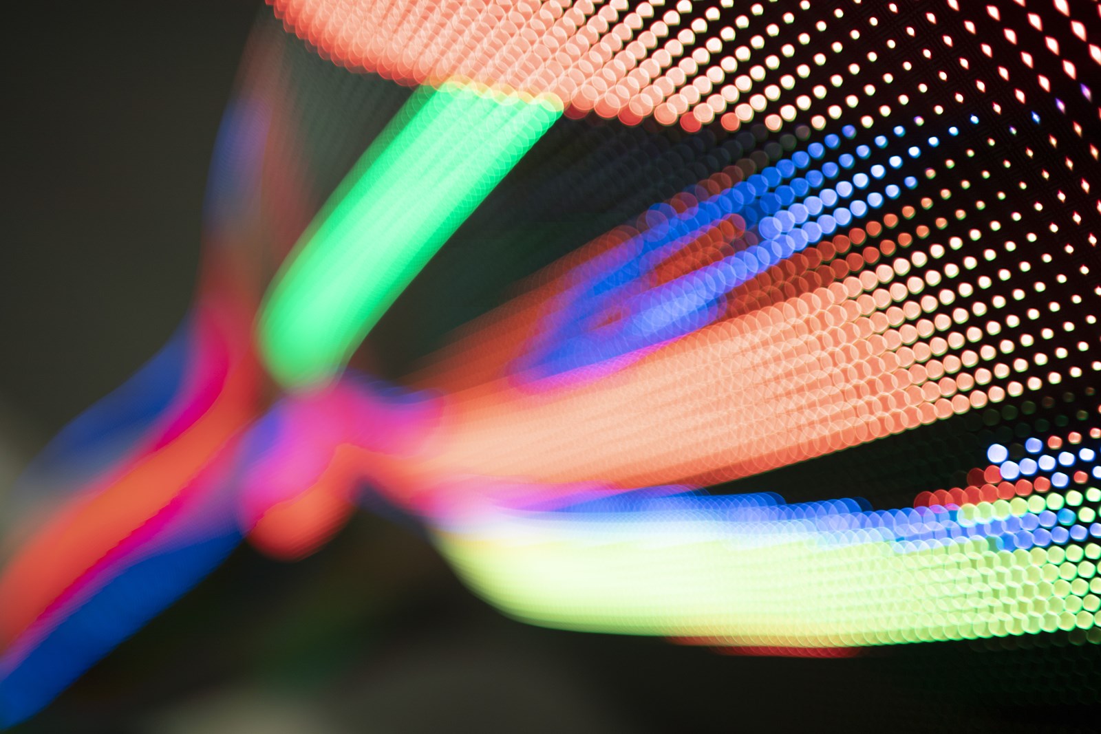 Flexible LED screen, computer, generative custom software, real-time data, metal structure