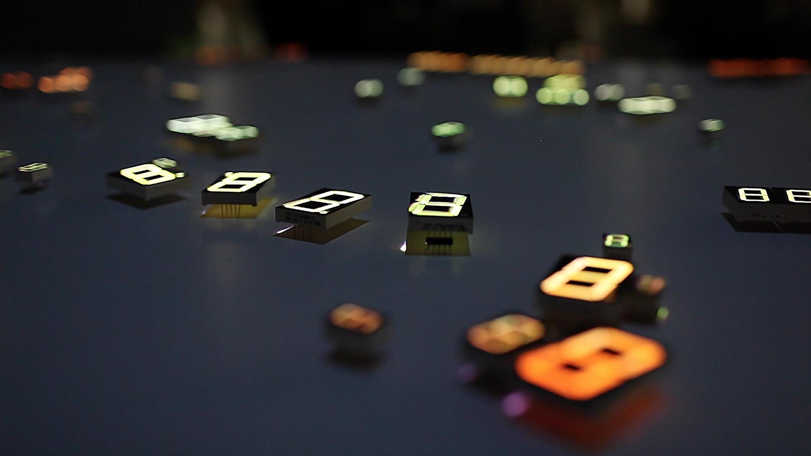 Discarded 7 segment displays, projector, video player, metal table. 5:00 video loop.