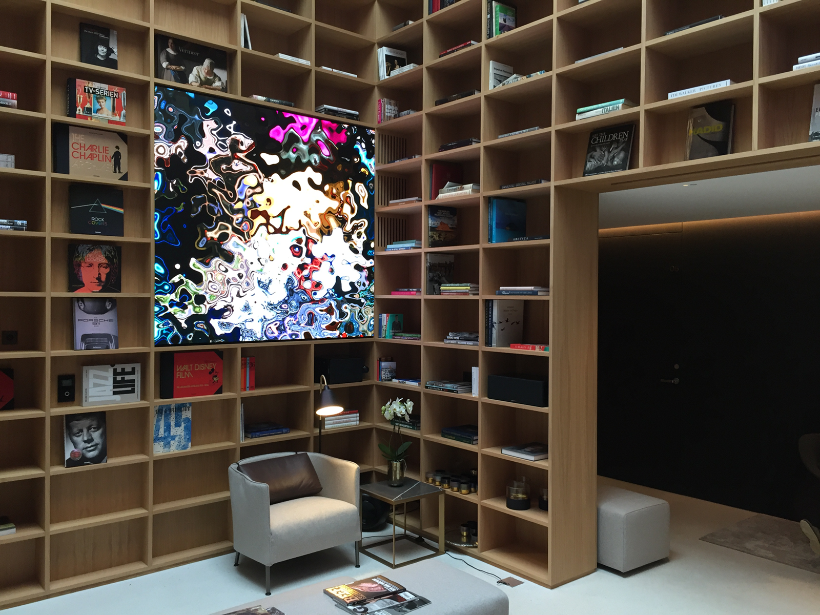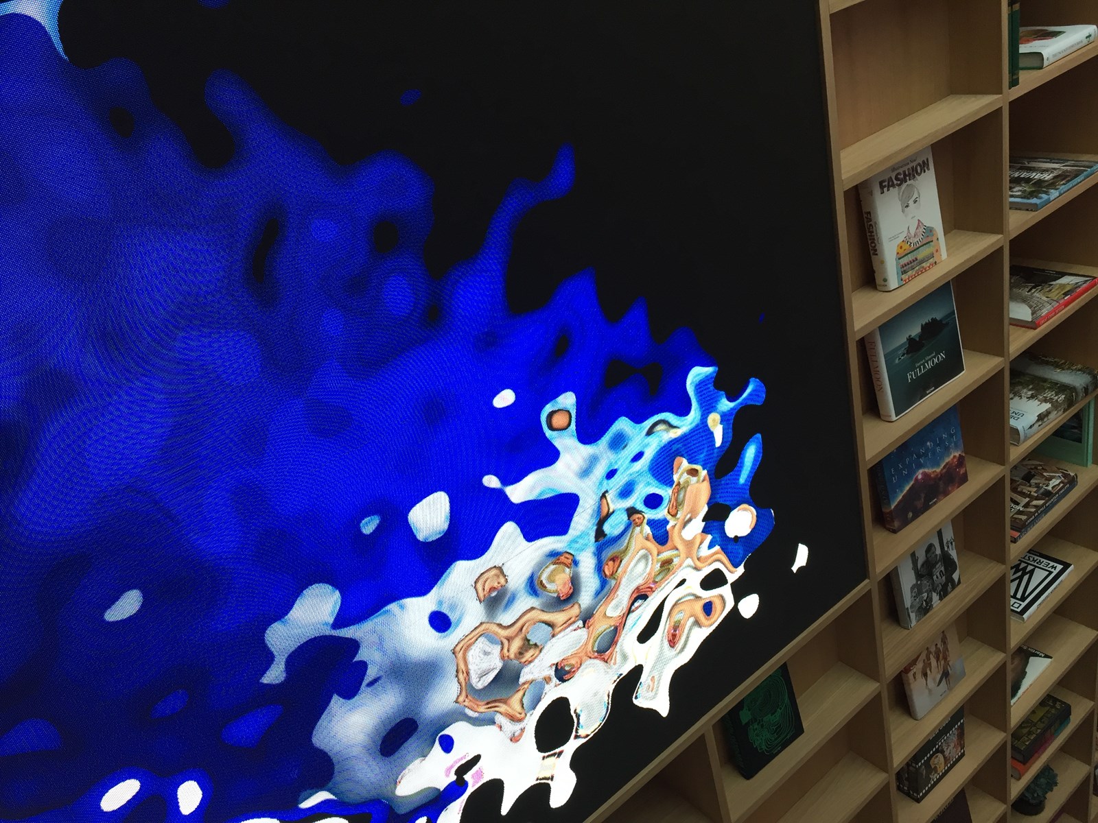 Cannula, la obra basada en un video generativo situado en una librería del hotel Beyond Geisel, permite al visitante interactuar con ella. A través de un iPad varias búsquedas son realizadas en youtube y los 100 videos más visitados son descargados directamente a la obra. A través de un algoritmo estos vídeos son transformados en animaciones líquidas que nos recuerdan a las pinturas del expresionismo abstracto. Algunos detalles permanecen reconocibles- una cara, una mano, un automóvil - dentro de esa constante mutación de formas generadas por la obra. Dependiendo de la temática la búsqueda, el color, esquema y ritmo varían.