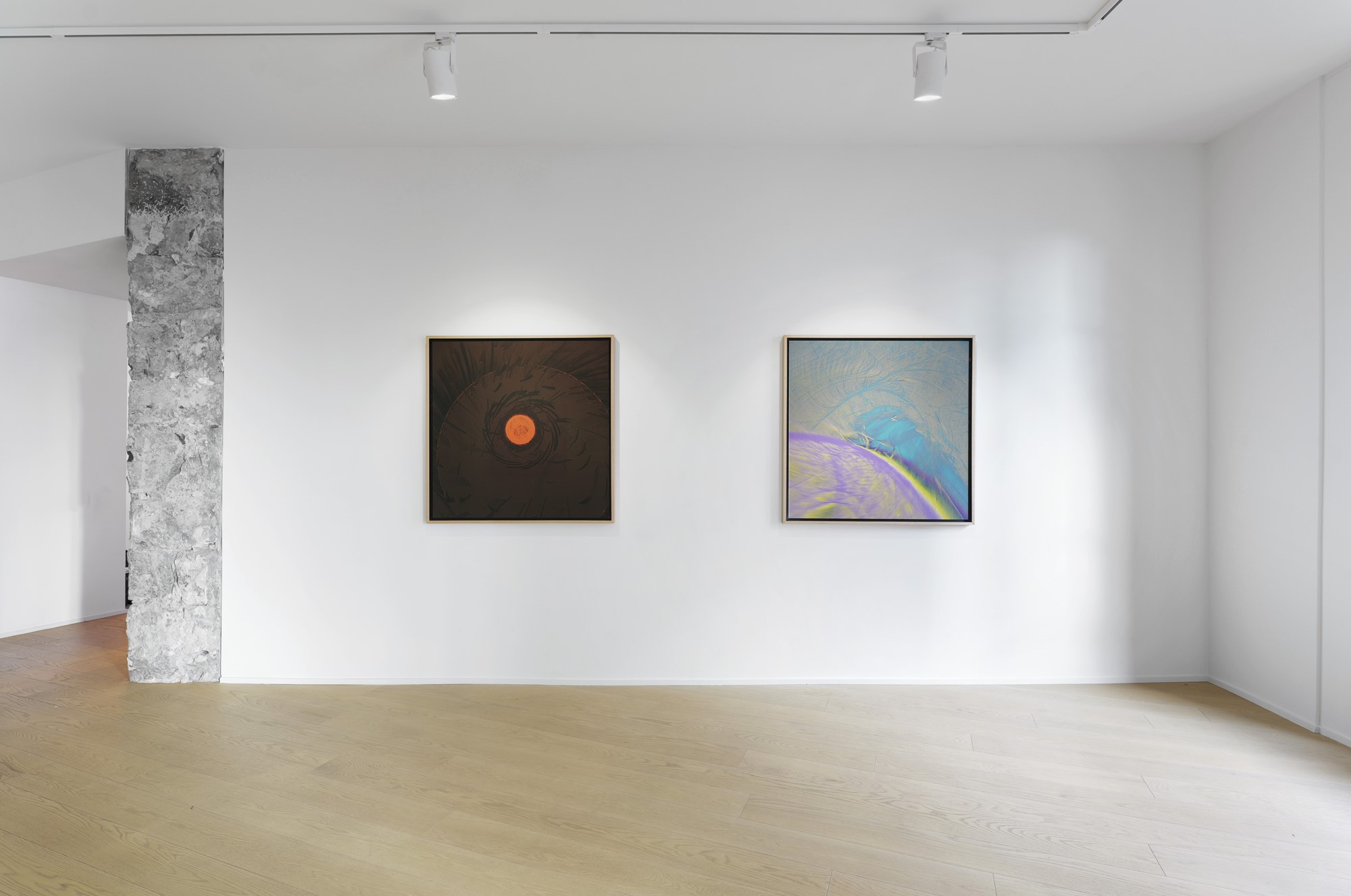 Drawing on the visual language of printmaking—lithography, engraving, residue, and noise—Orbital converts satellite trajectories into gestural marks that evoke forms resembling cellular structures, biological nests, or fertilized ova. The work shifts between five distinct perspectives: Low Earth Orbit (LEO), Medium Earth Orbit (MEO), Geosynchronous Orbit (GEO), High Elliptical Orbit (HEO), and a ground-level perspective looking skyward.