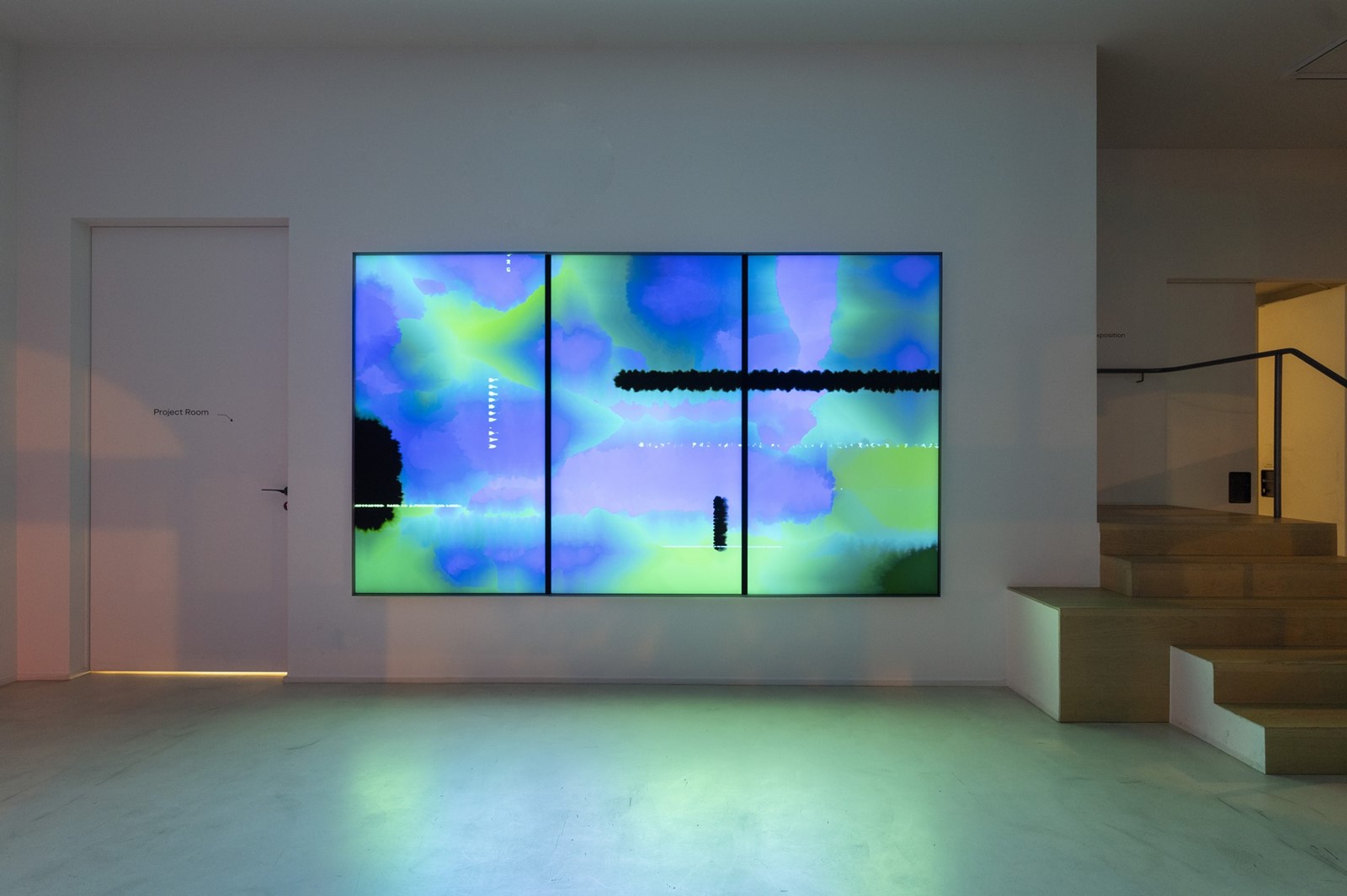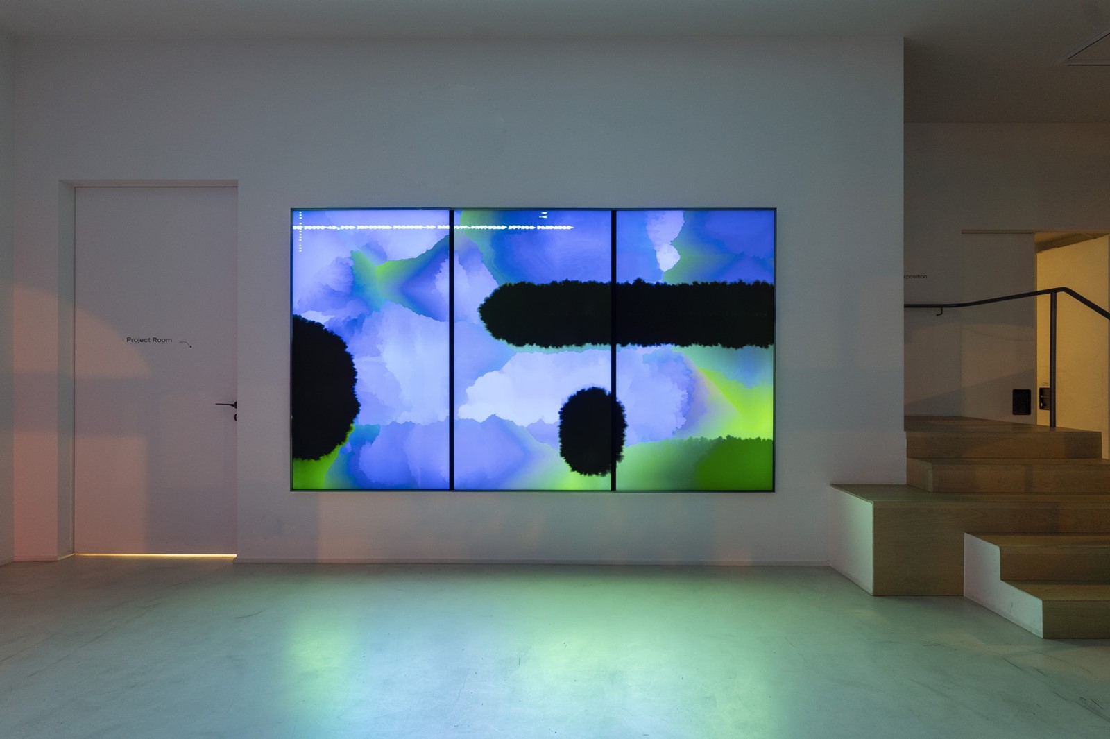 Zero-Day draws from traditions of abstract Chinese ink art, as well as the fluidity of watercolors. Other influences include Spanish baroque landscape paintings and psychedelic aesthetics. Within the animation displayed, text transforms into vaporous, colorful forms that mirror the ideas and emotions the work conveys. The artwork represents an evolving digital landscape of vulnerability, protection, and the invisible threats that affect our interconnected society.