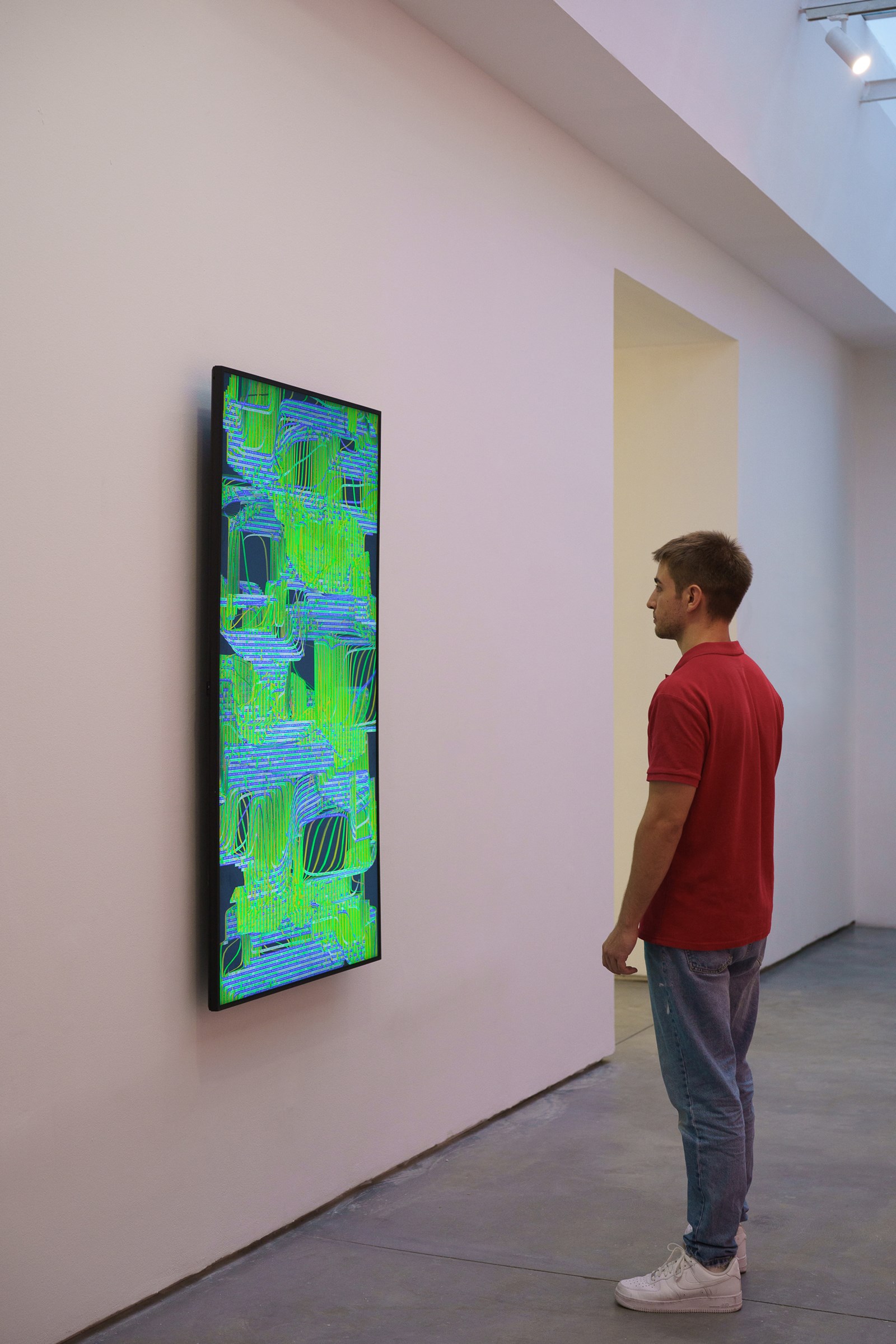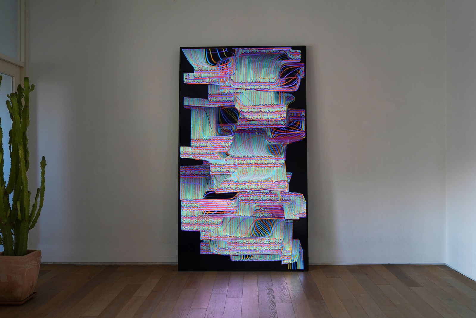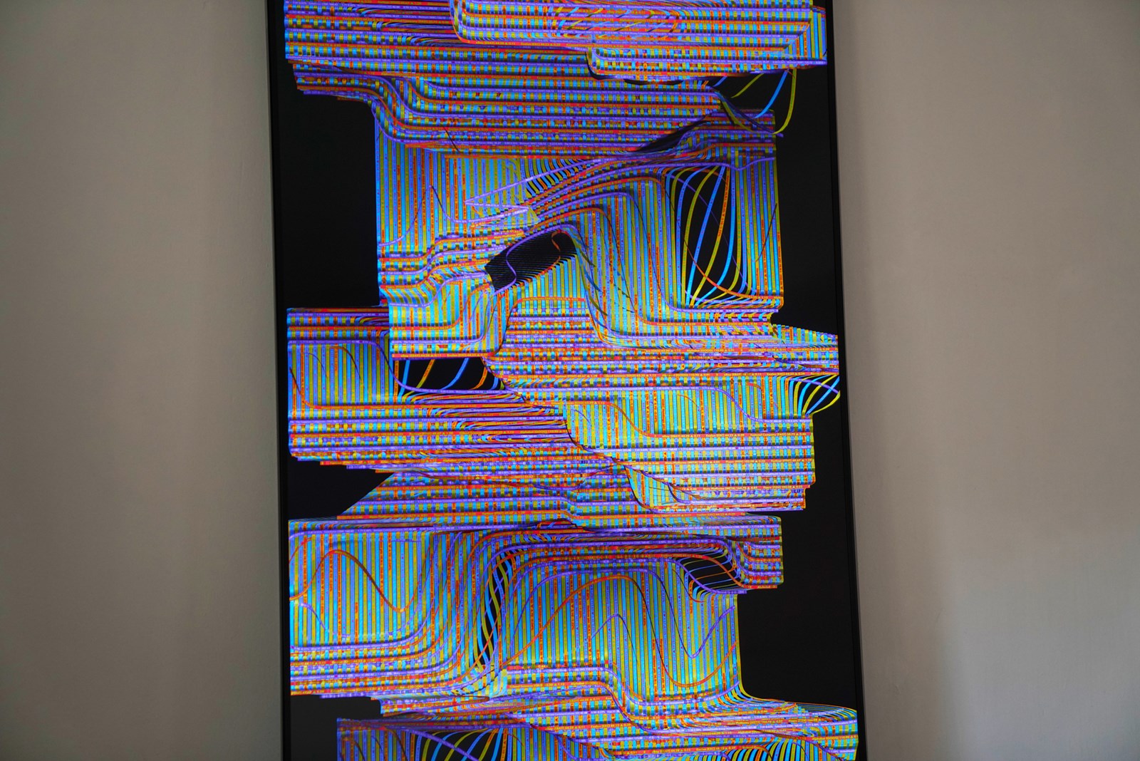 Abacus pertenece a la serie Pixelweaver, proyecto que recurre al textil como metáfora del tejido social que la información crea, y a veces destruye. Estas obras rinden homenaje a la estrecha relación que hay entre la computación y el textil, empezando por el telar Jacquard de principios del siglo XIX, considerado por muchos historiadores como el primer ordenador. Para esta nueva serie, el estudio del artista ha creado un telar virtual basado en técnicas artesanales. Esta herramienta algorítmica permite generar una diversidad de patrones creados con diversas fuentes u “ovillos”.
