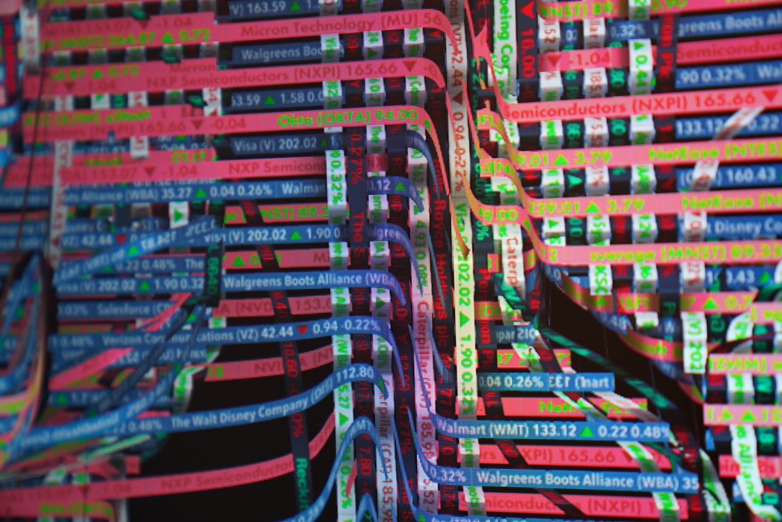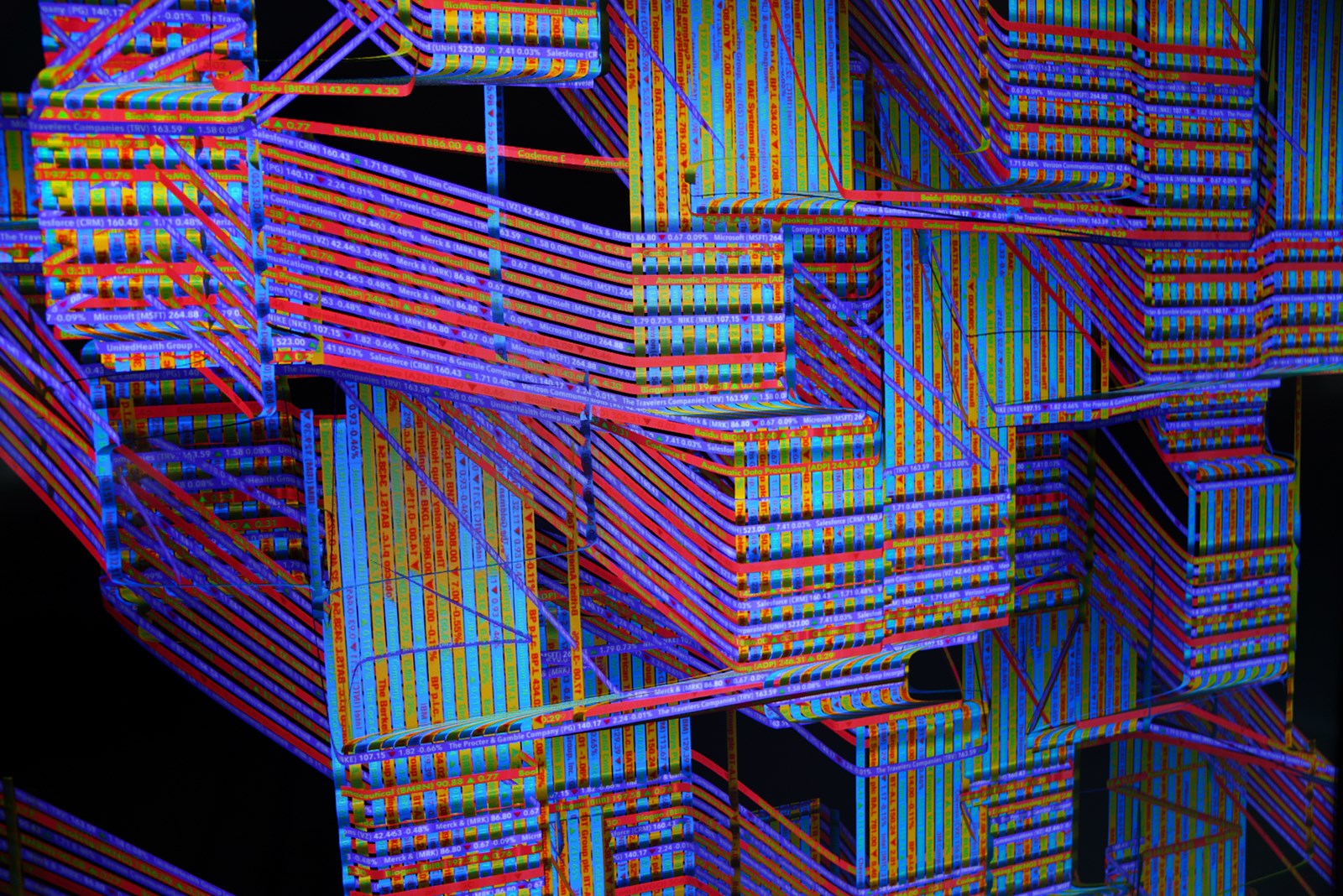 Textil digital generativo creado con data en tiempo real de los principales fondos índice bursátiles.