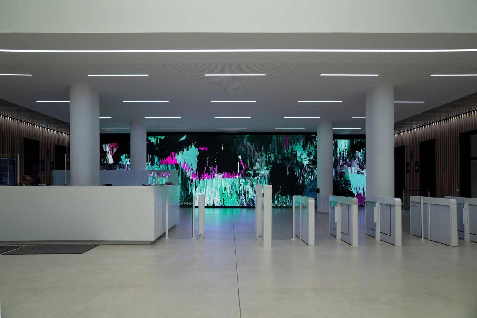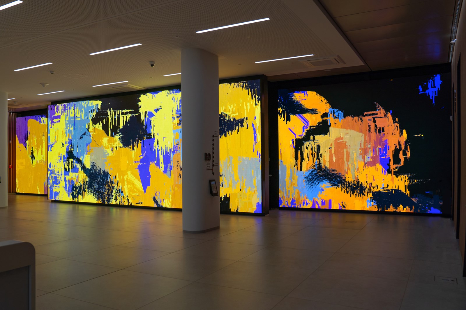 Brushstrokes es una obra de arte generativa de pantalla LED diseñada específicamente para el lobby del nuevo edificio DeKa Bank en Lyoner Straße. La obra se expande a lo largo del lobby repartida en tres pantallas LED. Los gestos de Brushstrokes, realizados mediante un software desarrollado específicamente para la pieza, evocan el expresionismo abstracto que nació en Estados Unidos a finales de los años cuarenta. Como pintura que nunca se termina a sí misma, la obra incluye formas geométricas de estética claramente digital, convirtiéndose en una conversación entre formas de creatividad analógicas y electrónicas.