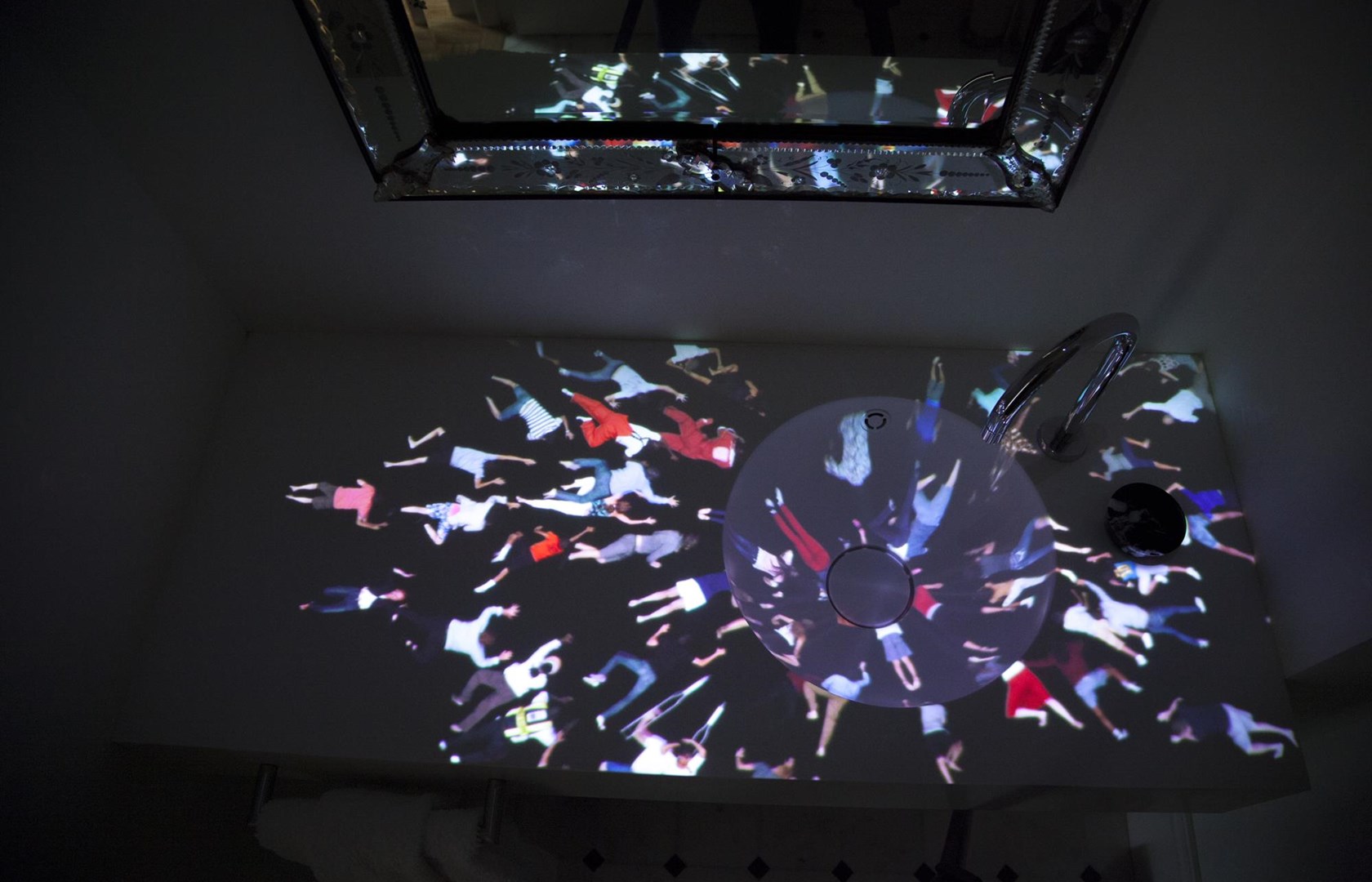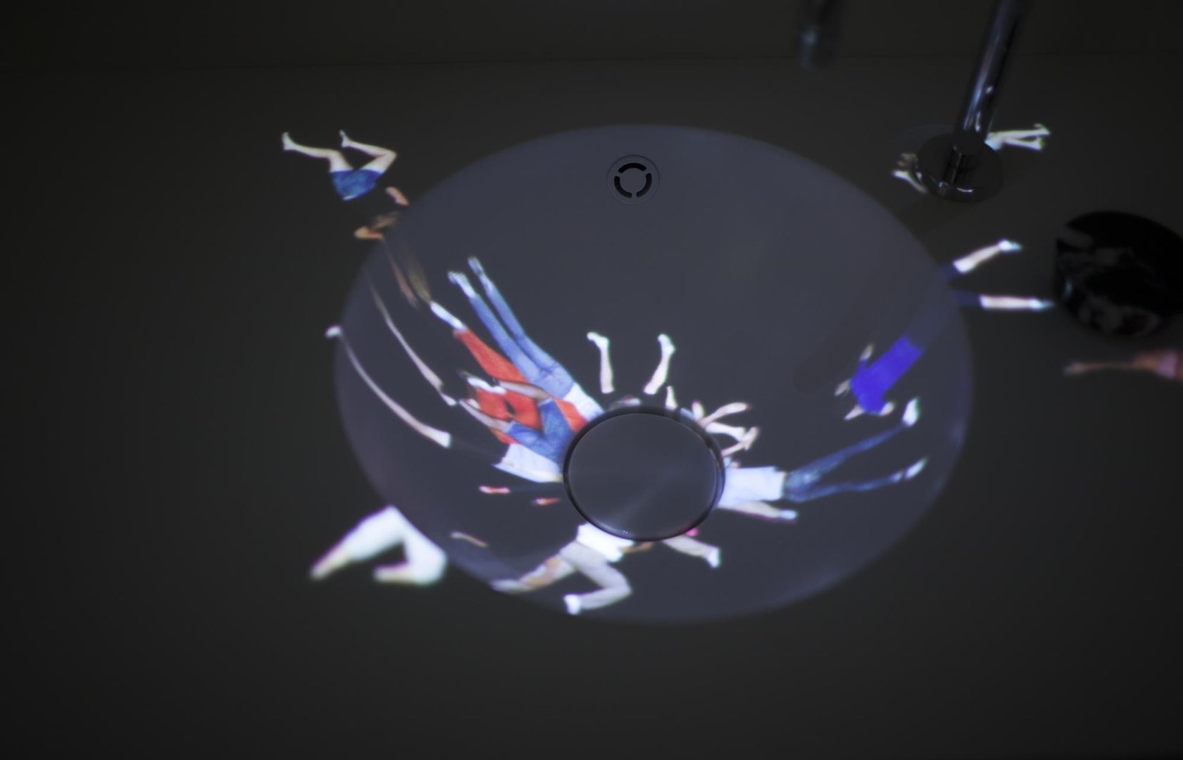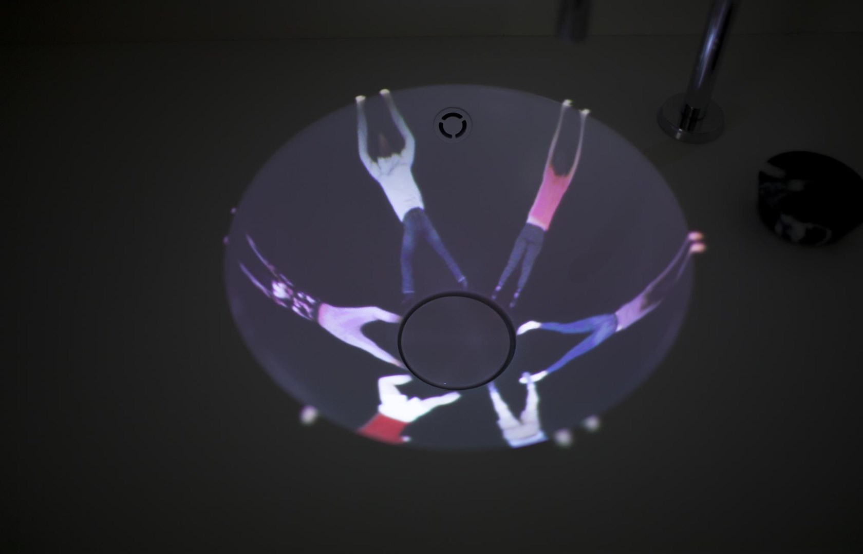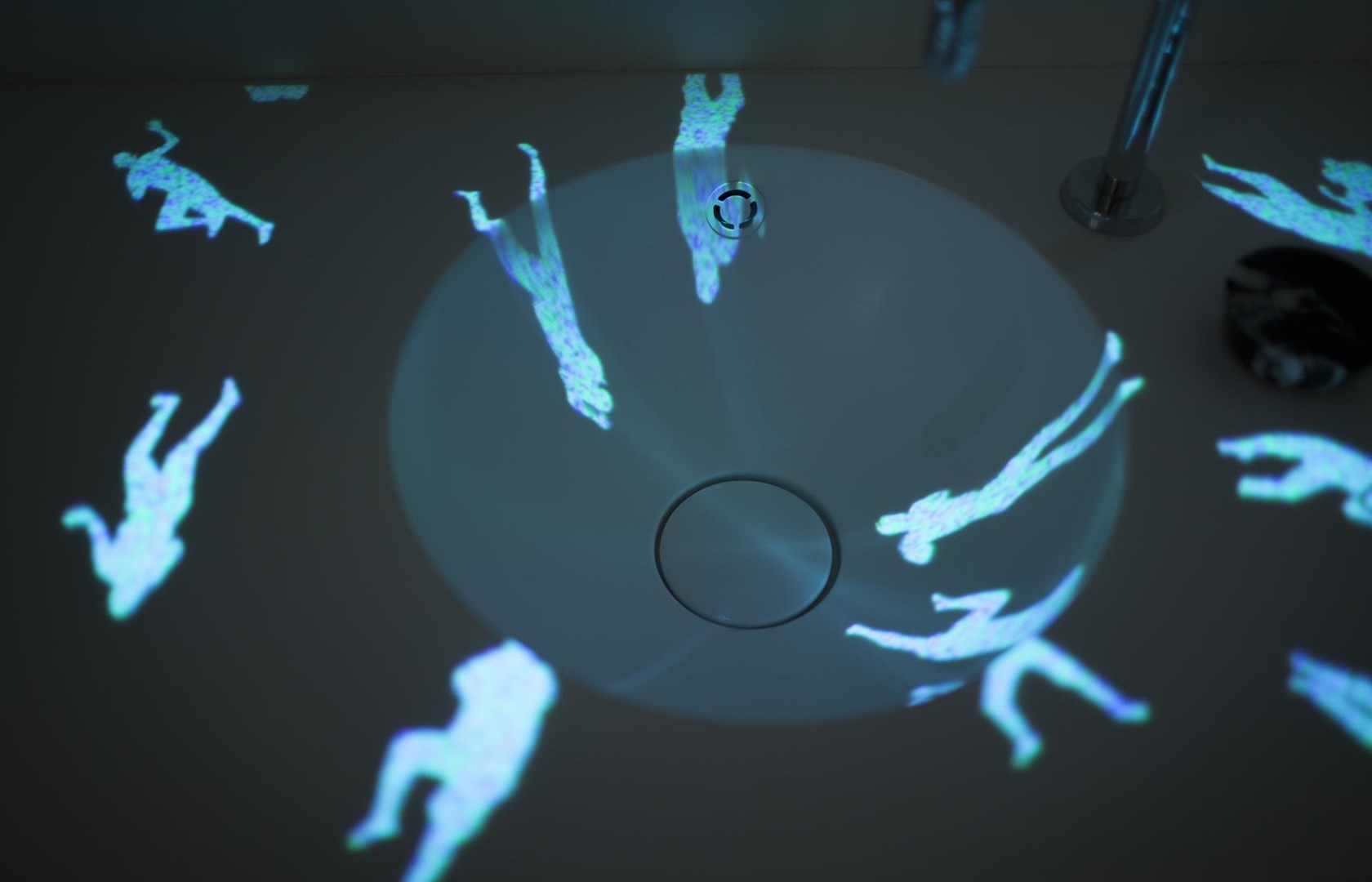 A special edition for a private home in Madrid. In the guest bathroom, an overhead projector casts figures onto the sink. The figures playfully crawl along the porcelain’s surface and eventually flow down the drain.
