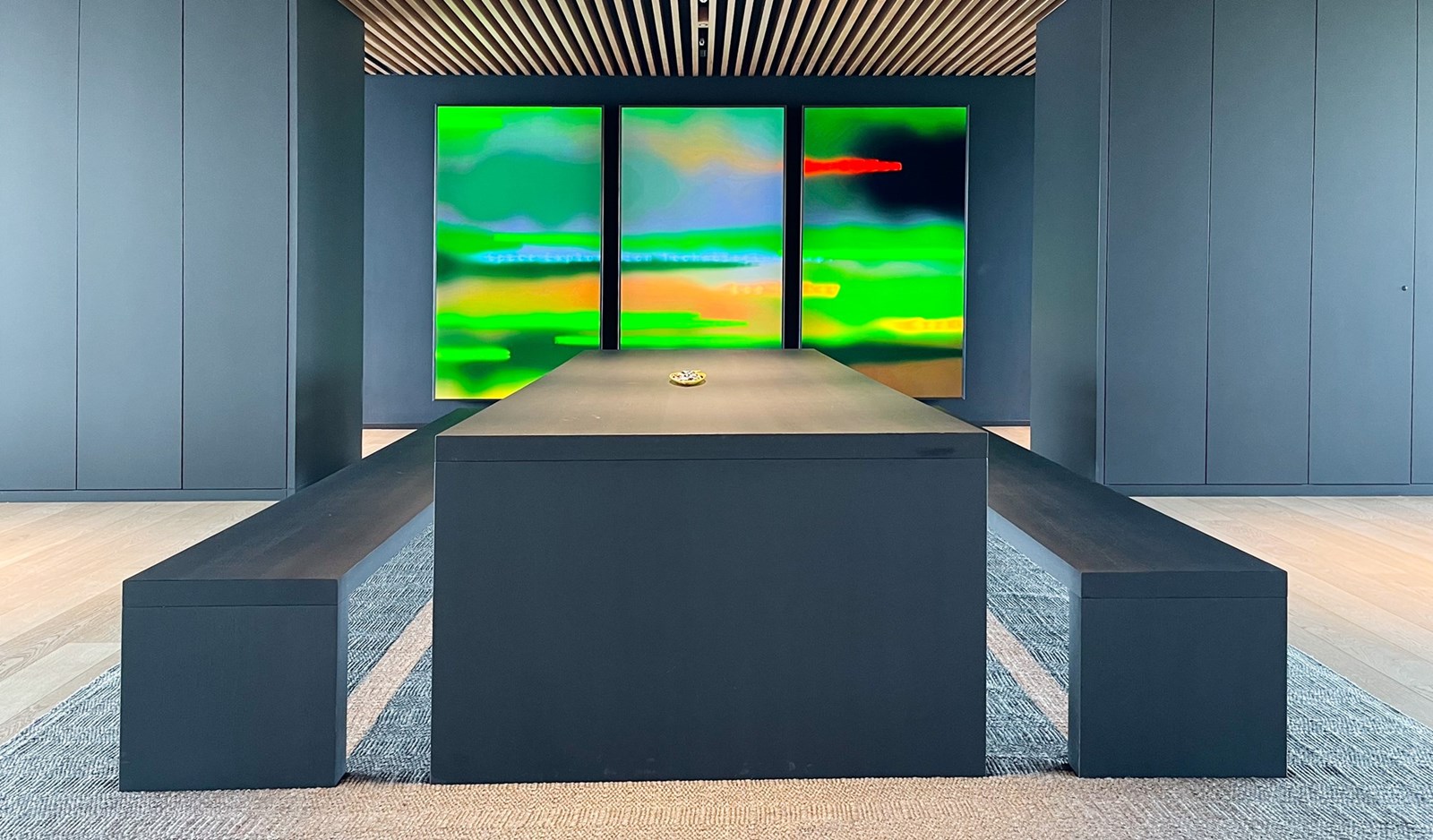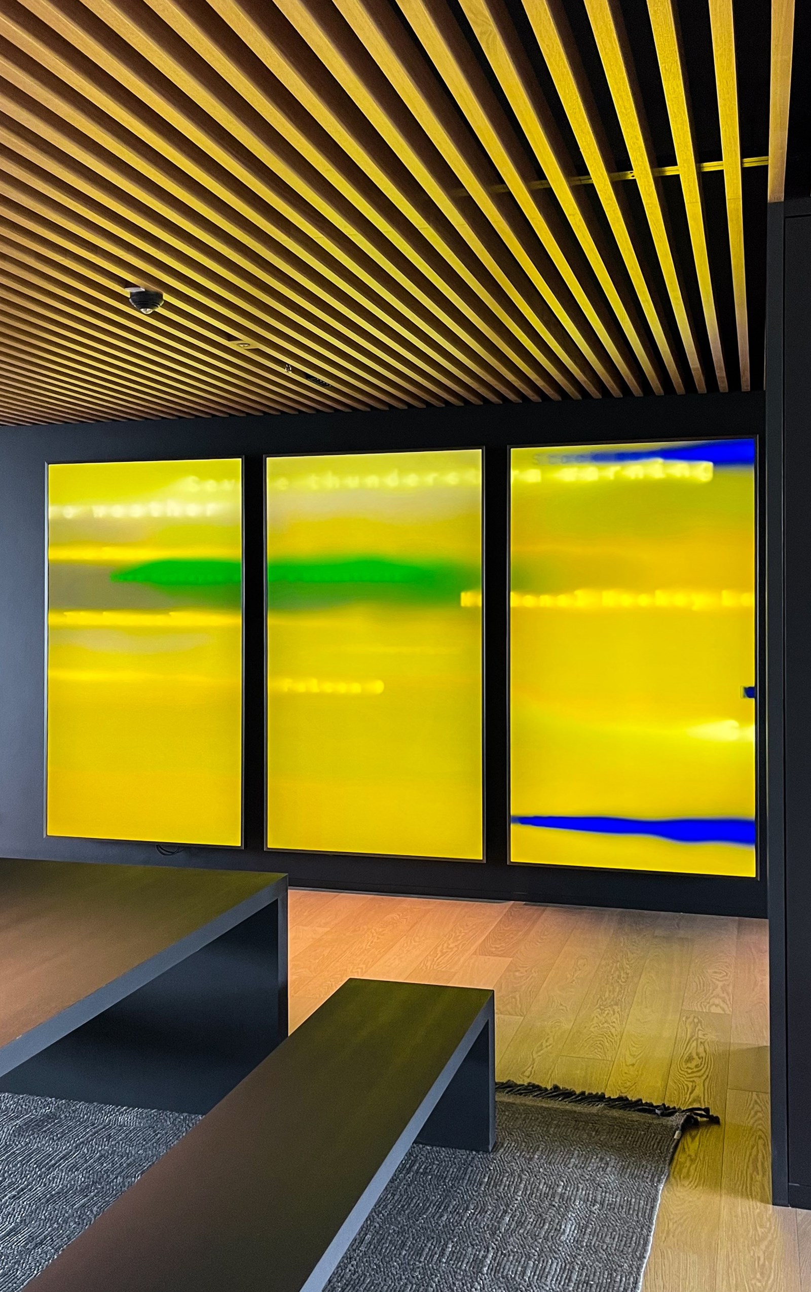 Stripped from headlines, graphic imagery, and statistics, each phrase inspires a contemplative experience, a chance for the viewer to ruminate on what is streaming through the collective consciousness at any given time. Loom Special Edition weaves a social fabric, mixing the transcendental with the banal, to present the spirit of our time in generative motion.